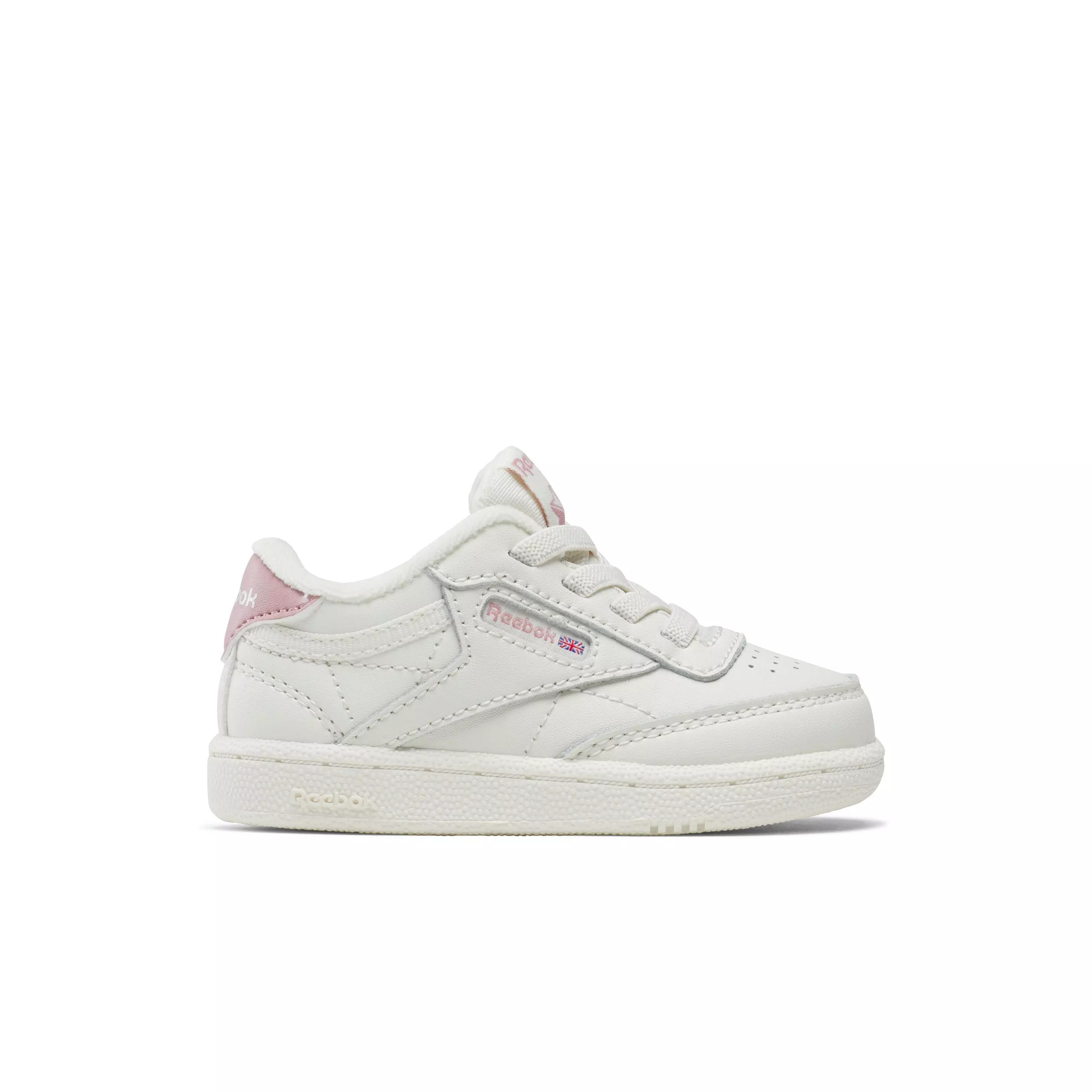 Clean and crisp. These Reebok Club C "White/Pink" Infant Girls' Shoe stay true to their classic '80s style with a smooth leather upper. Symmetrical stitching gives this tennis icon its signature shape. The soft midsole keeps little ones comfortable with every crawl and step.