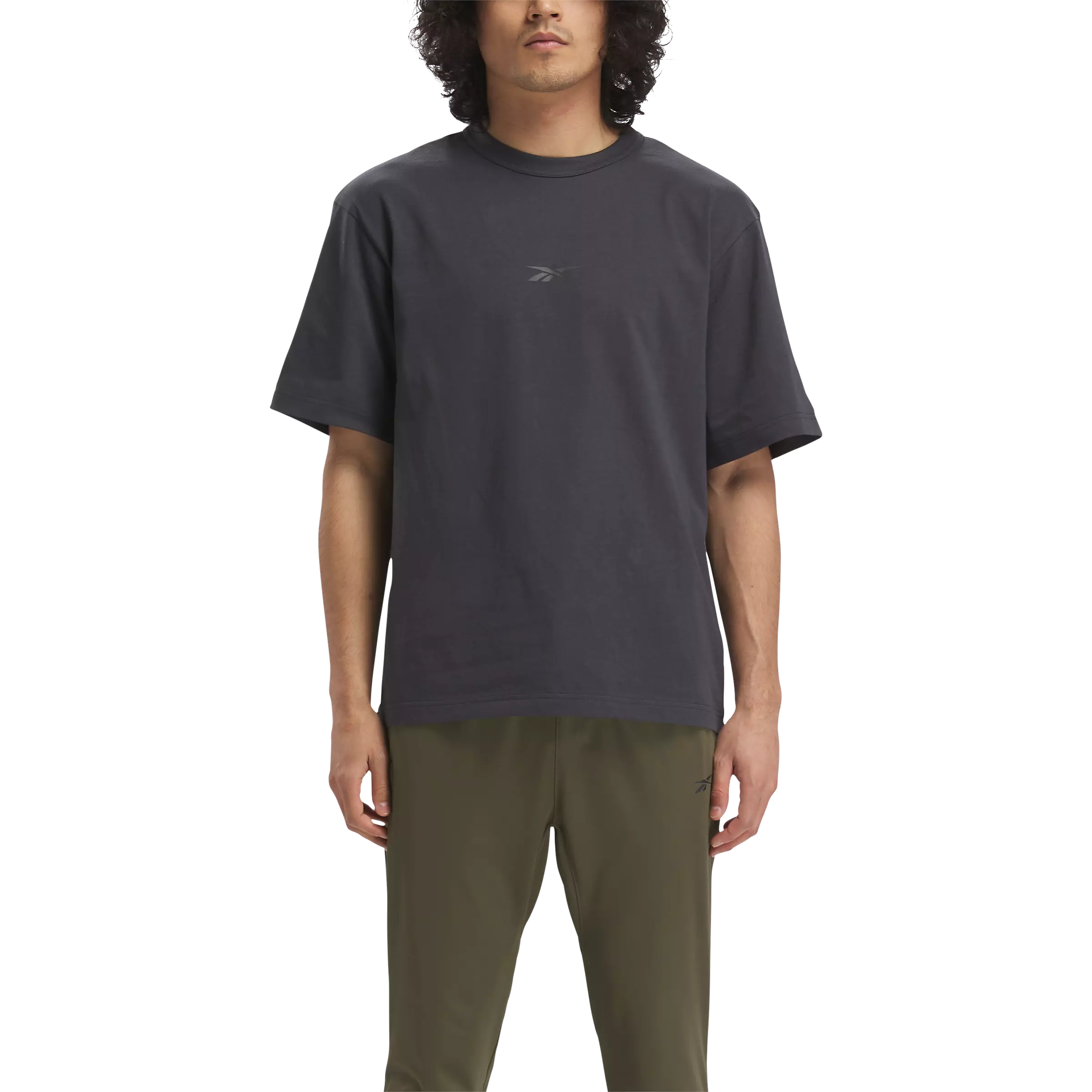 Keep your motivation high in the gym or on rest days in this Reebok Men's No Matter The Test Graphic T-Shirt - Grey. Single-jersey cotton feels extra soft and comfy, and the straight cut lets you move naturally for a distraction-free feel. Bold graphics keep your next training session top of mind. Our cotton products are entirely sourced through sustainable cotton farming and are made with at least 50% Better Cotton.Features