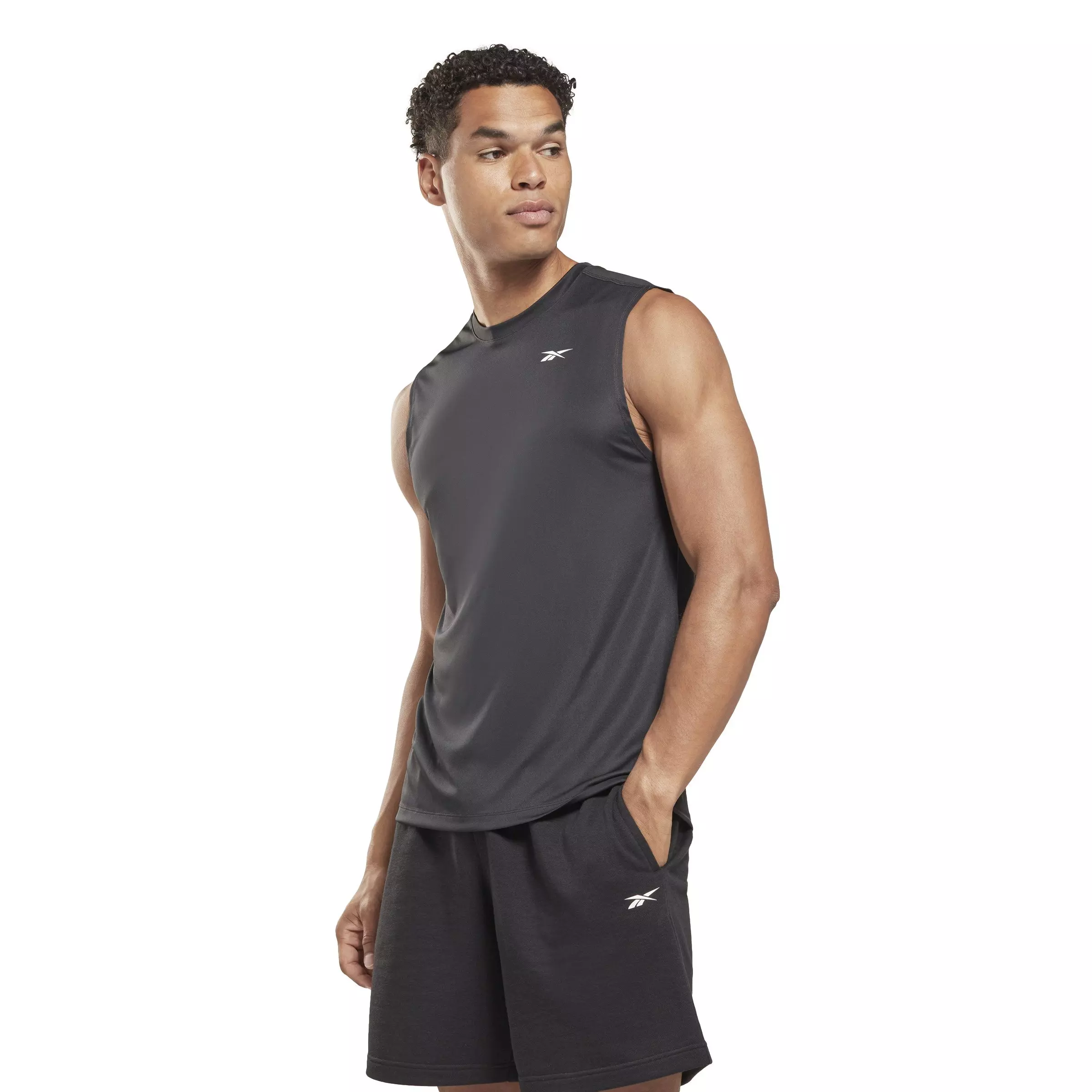Push through every session in the Reebok Men's Training Sleeveless Tech Tee- Black, designed to keep you comfortable when the heat turns up. Lightweight Speedwick fabric pulls sweat away to help you stay dry, while a breathable mesh back panel boosts airflow during high-intensity moves.