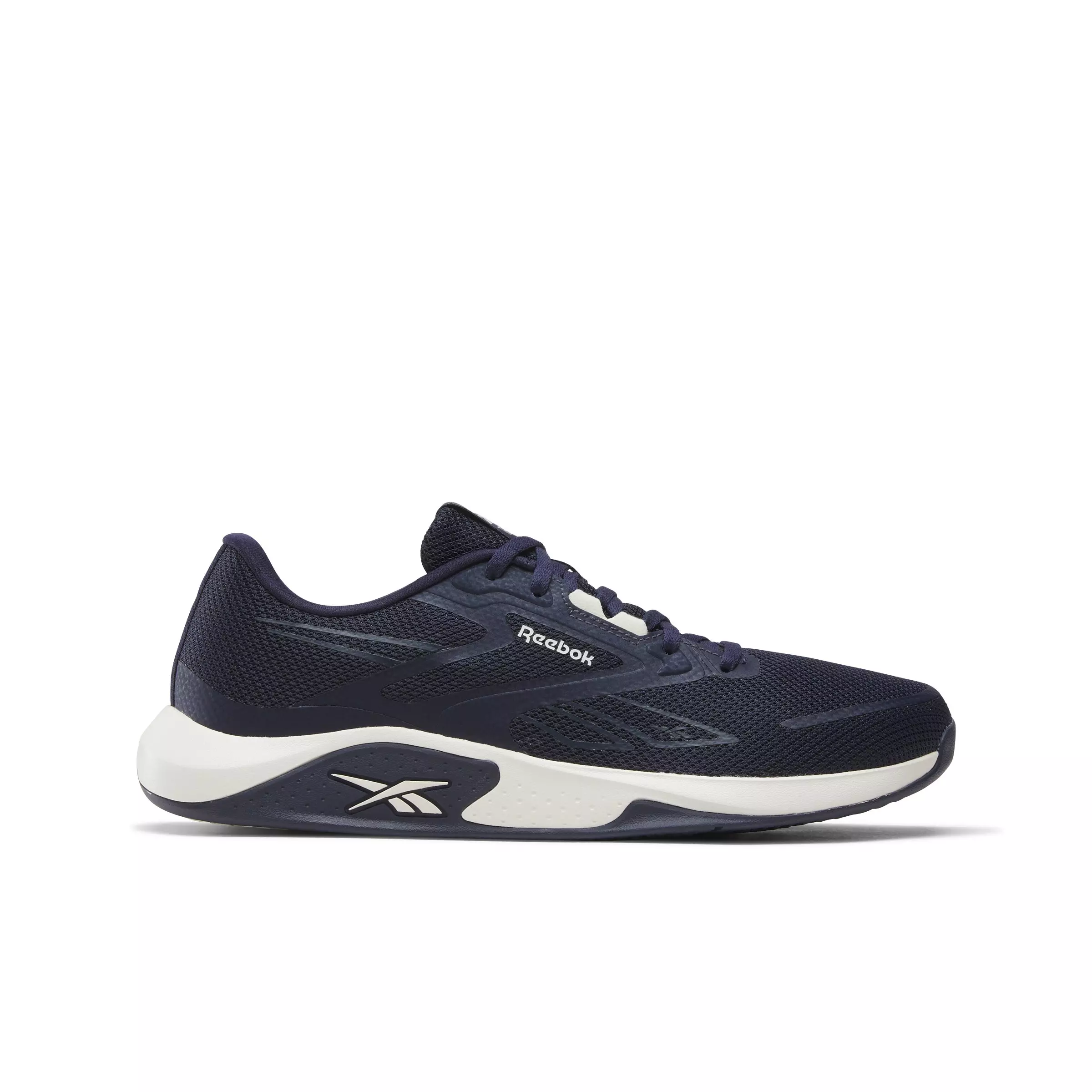 Push your limits in the Reebok Nanoflex TR 3 "Navy/White" Men's Training Shoe. A tech mesh upper with an internal support system keeps you locked in for every squat and sprint. The wide-base midsole adds stability, so you stay grounded during tough workouts.Features