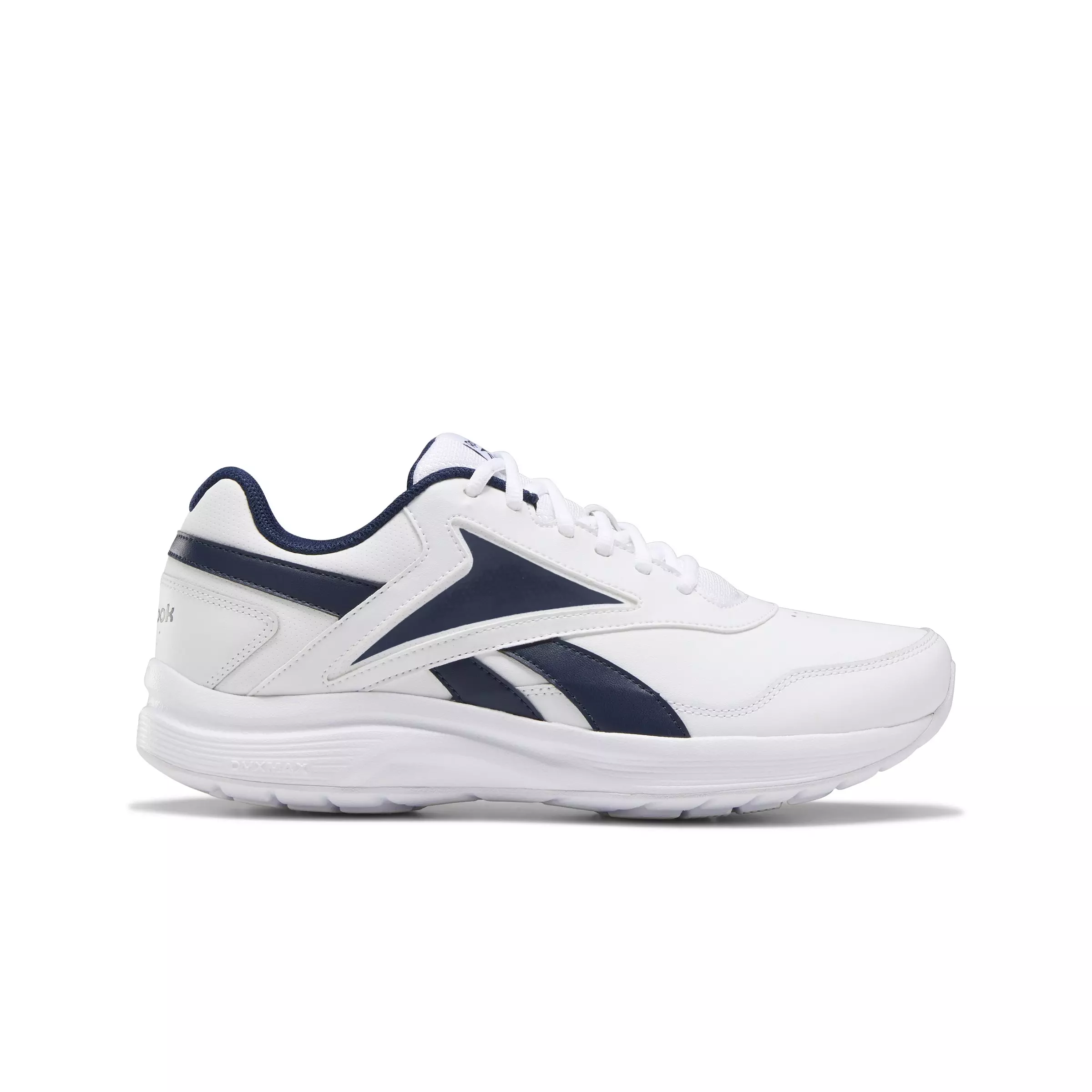 Step into lasting comfort with the Reebok Walk Ultra 7 DMX MAX "Ftwr White/Collegiate Navy/Royal" Men's Shoe. DMX cushioning actively moves air from heel to toe and back again, delivering a smooth, cushioned feel with every step.