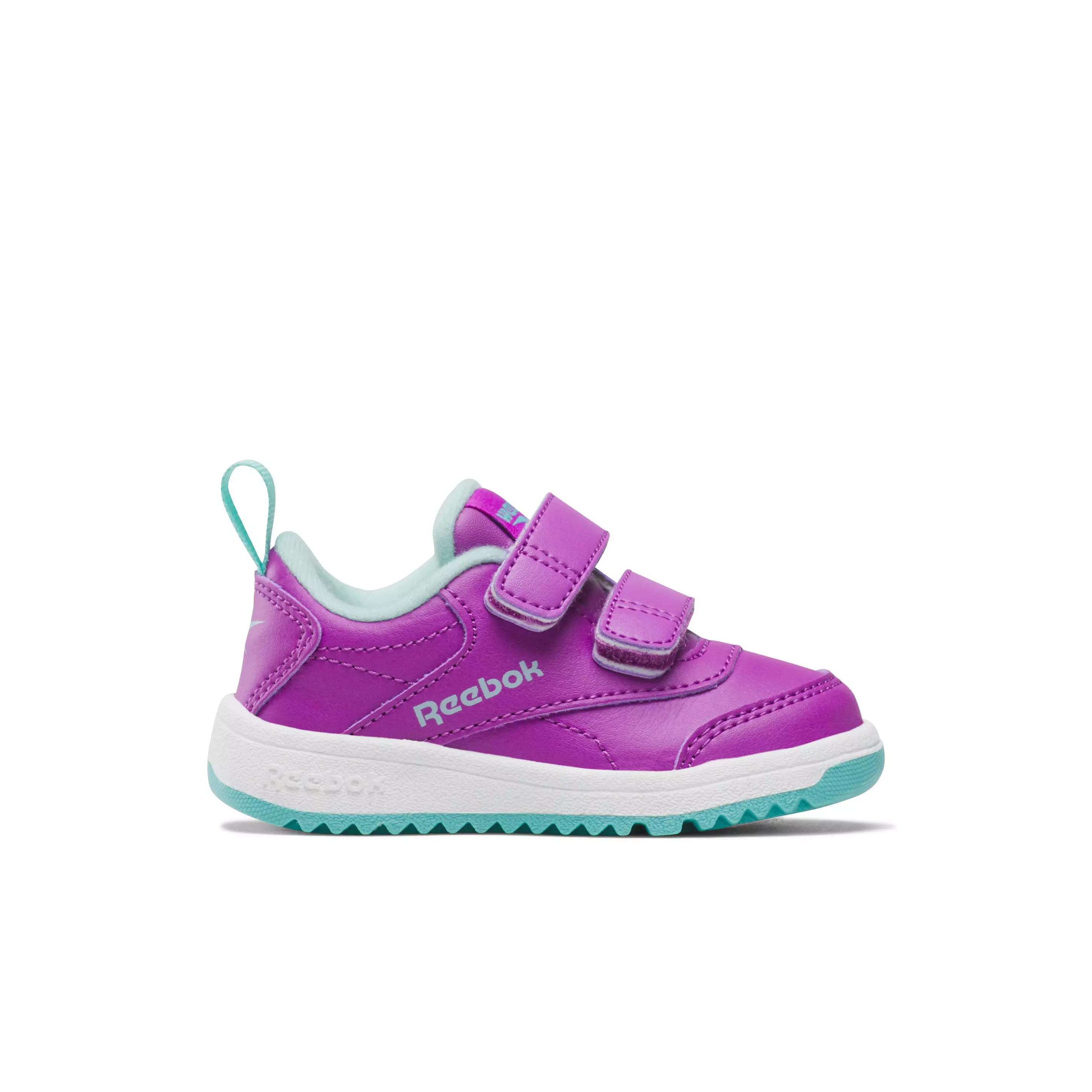 The Reebok Weebok Clasp Low 2 "Purple/Teal/White" Infant Girls' Shoe supports every small milestone, from crawling to standing to those first steps. Versaflex delivers the flexibility little feet need, while a double hook-and-loop strap creates a secure, adjustable fit and makes on and off simple for busy mornings.