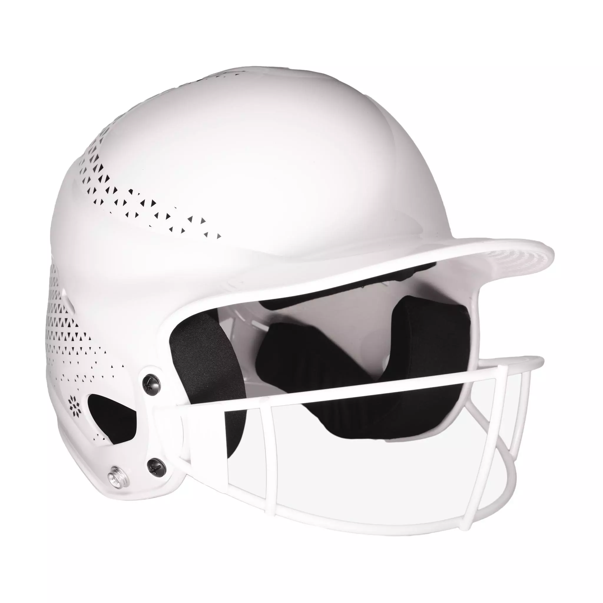 The RIP-IT Vision Classic 2.0 Softball Helmet - White/Black features an impact-resistant outer shell that absorbs and deflects impacts. This design shields players during each play with consistent, reliable protection and lasting durability.