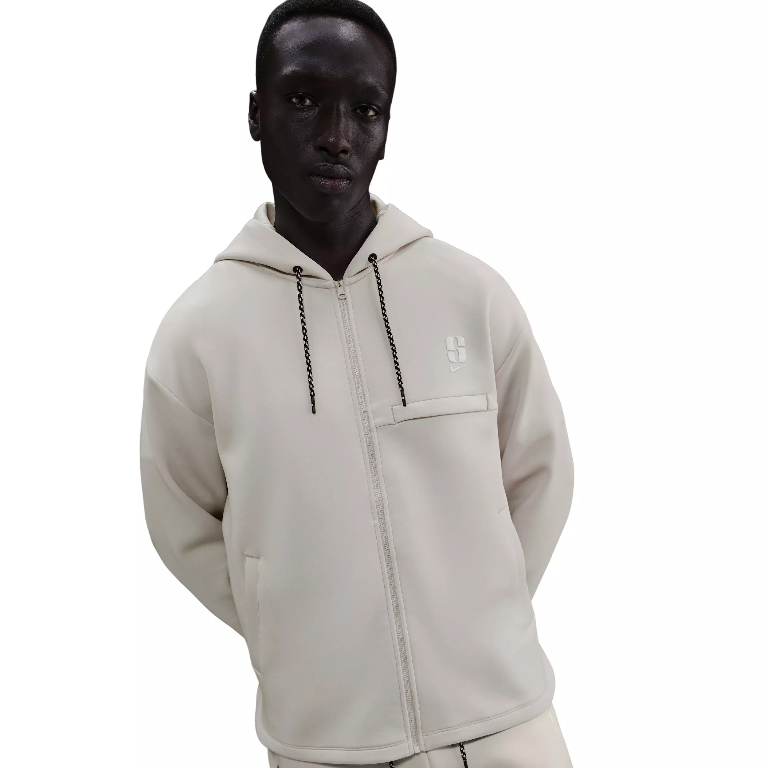 Sabrina Ionescu's versatile, all-gender collection helps keep you confident in your pursuit of excellence. Irresistibly smooth and sleek, this lt brown Sabrina Unisex Dri-FIT Loose Full-Zip Basketball Jacket is made with premium fabric that feels soft and airy, with the perfect amount of stretch for all your moves.Features