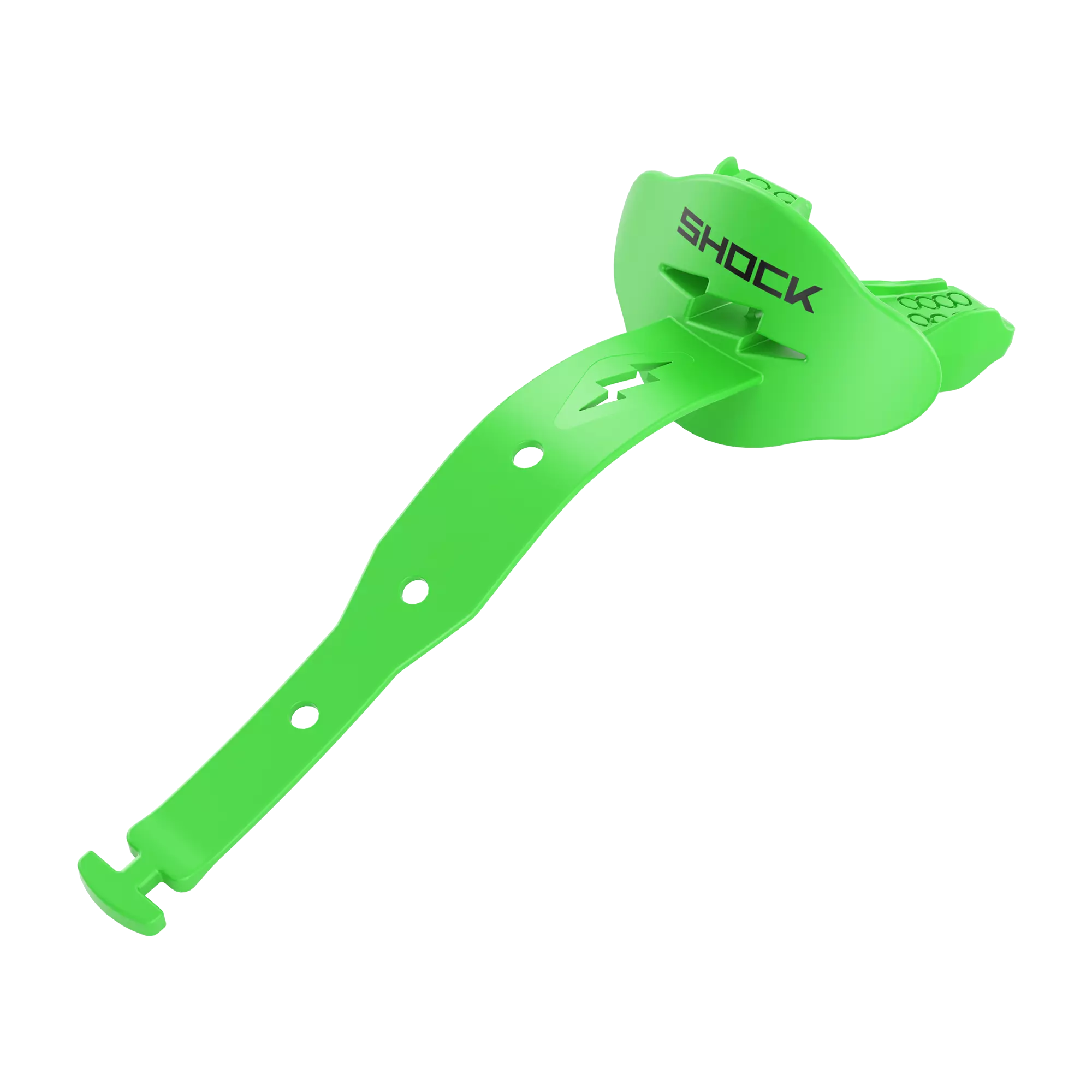 Catch lightning on the football field with Bolt, Shock Doctor's permanent strapped lip guard. No-boil, one-piece molded construction with airflow channel easily attaches to any helmet for fast, secure fit. Also works with braces. Good to go.Features