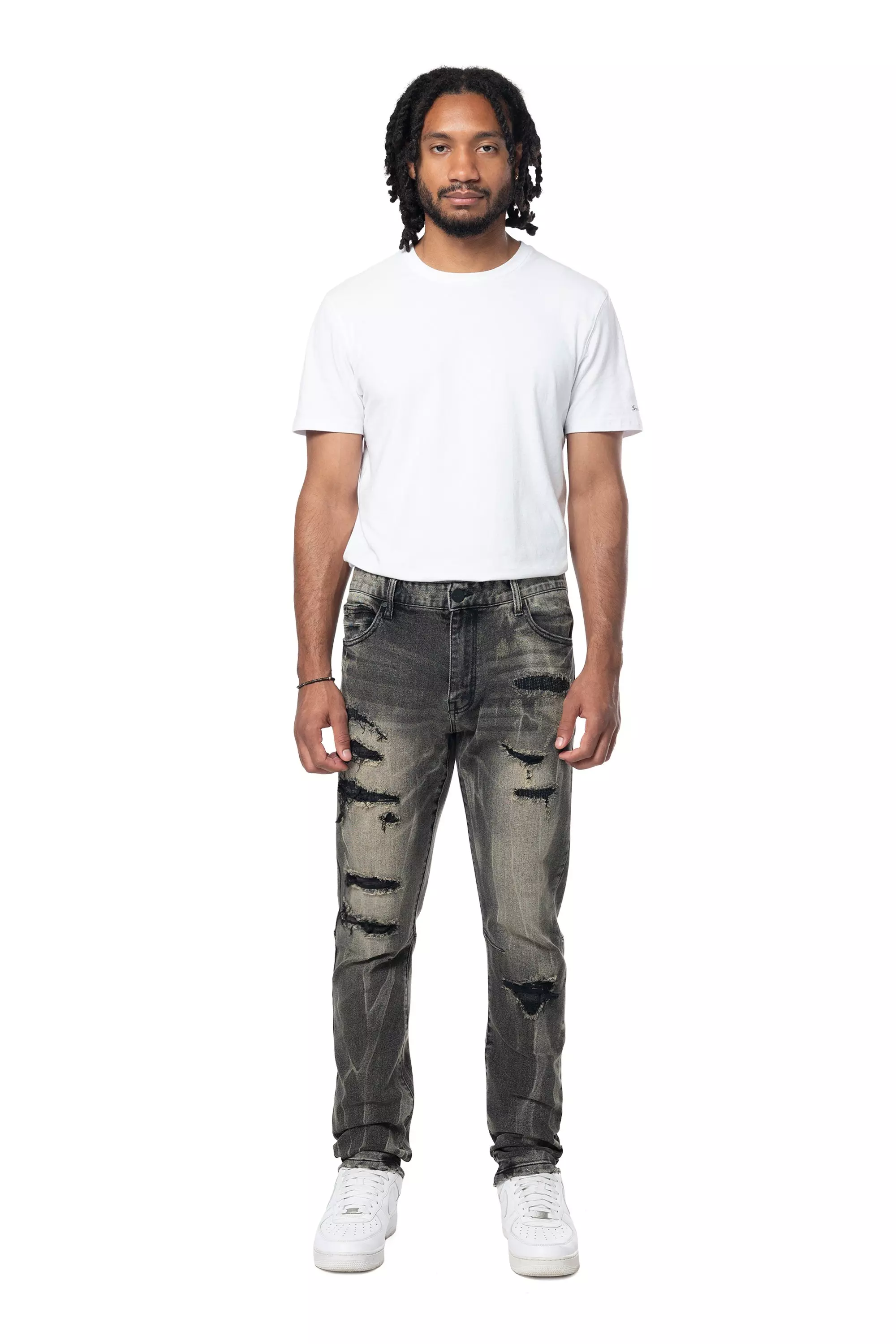 Smoke Rise Men's Dust Rip & Repair Lightning Jeans - Black