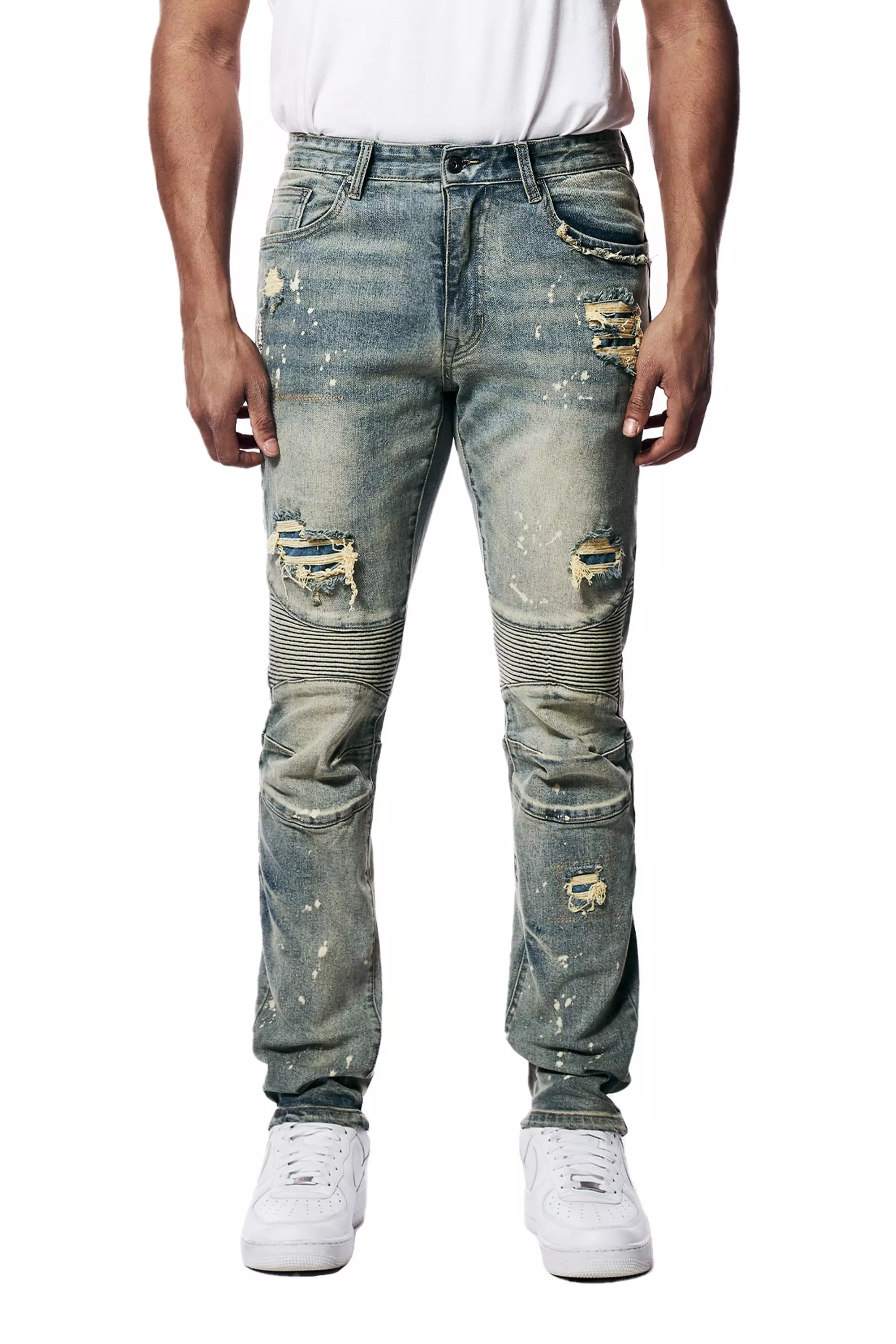 Smoke Rise Men's Rip & Repair Engineered Slim Fit Medium Wash Jeans