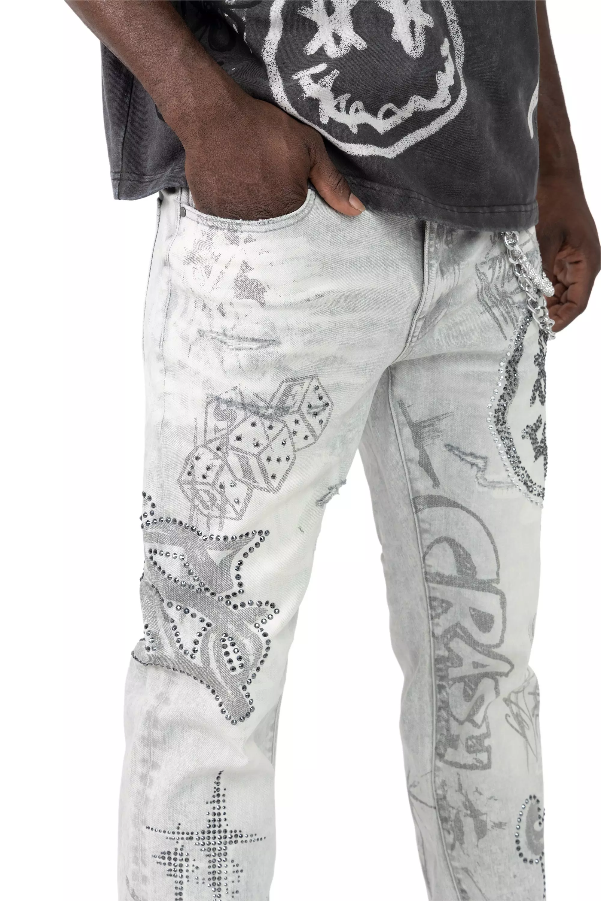 • Smoke Rise Men's Smile Doodle Denim Jeans - Breezy Grey - GREY
