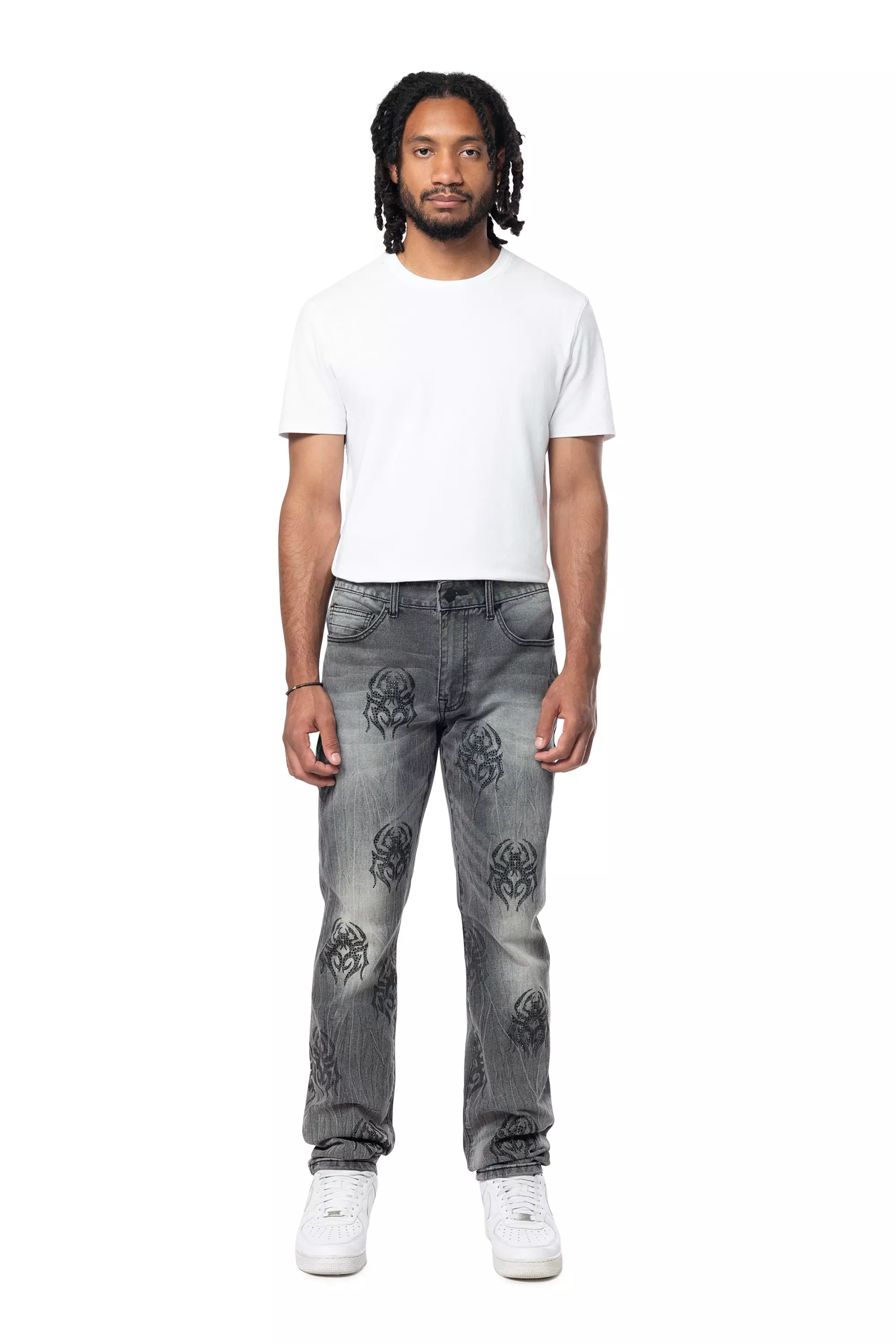Smoke Rise Men's Spider Rhinestone Slim Fit Denim Jeans