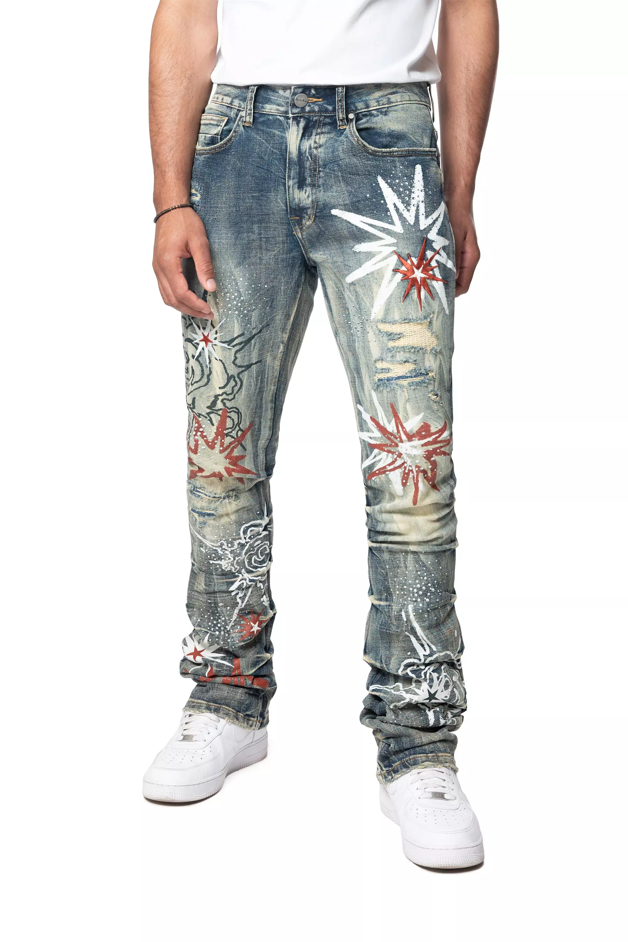 Smoke Rise Men's STK Flower Explosive Denim Jeans - Blue Toast