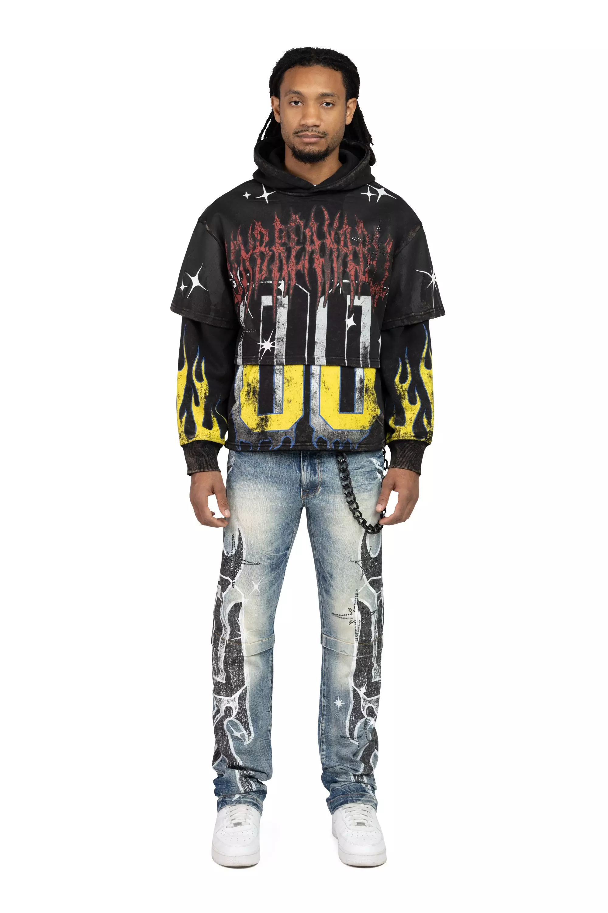 Smoke Rise Men's Straight Fit Unbreakable Flames Denim Jeans - Rhodes Blue