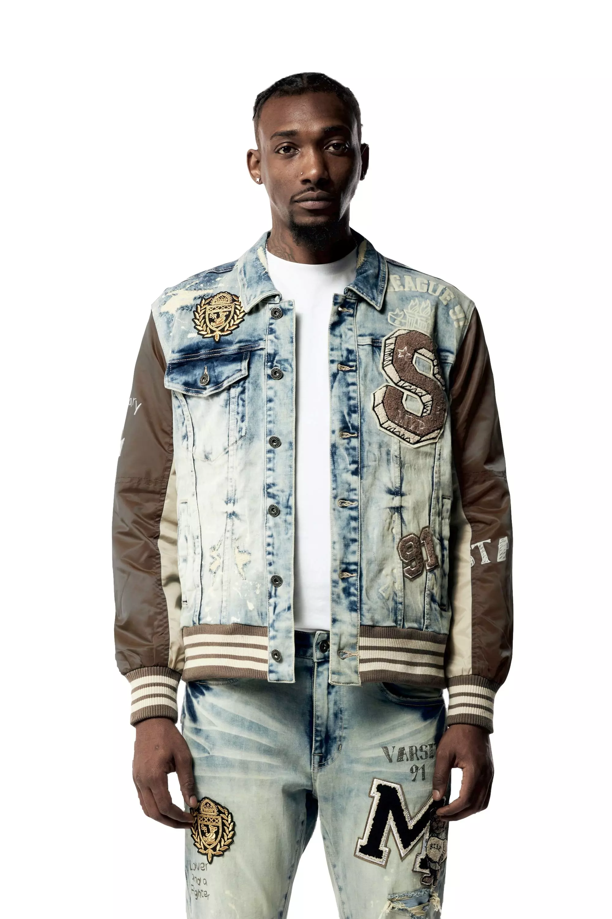 Smoke Rise Men's Varsity Denim and Nylon Jacket