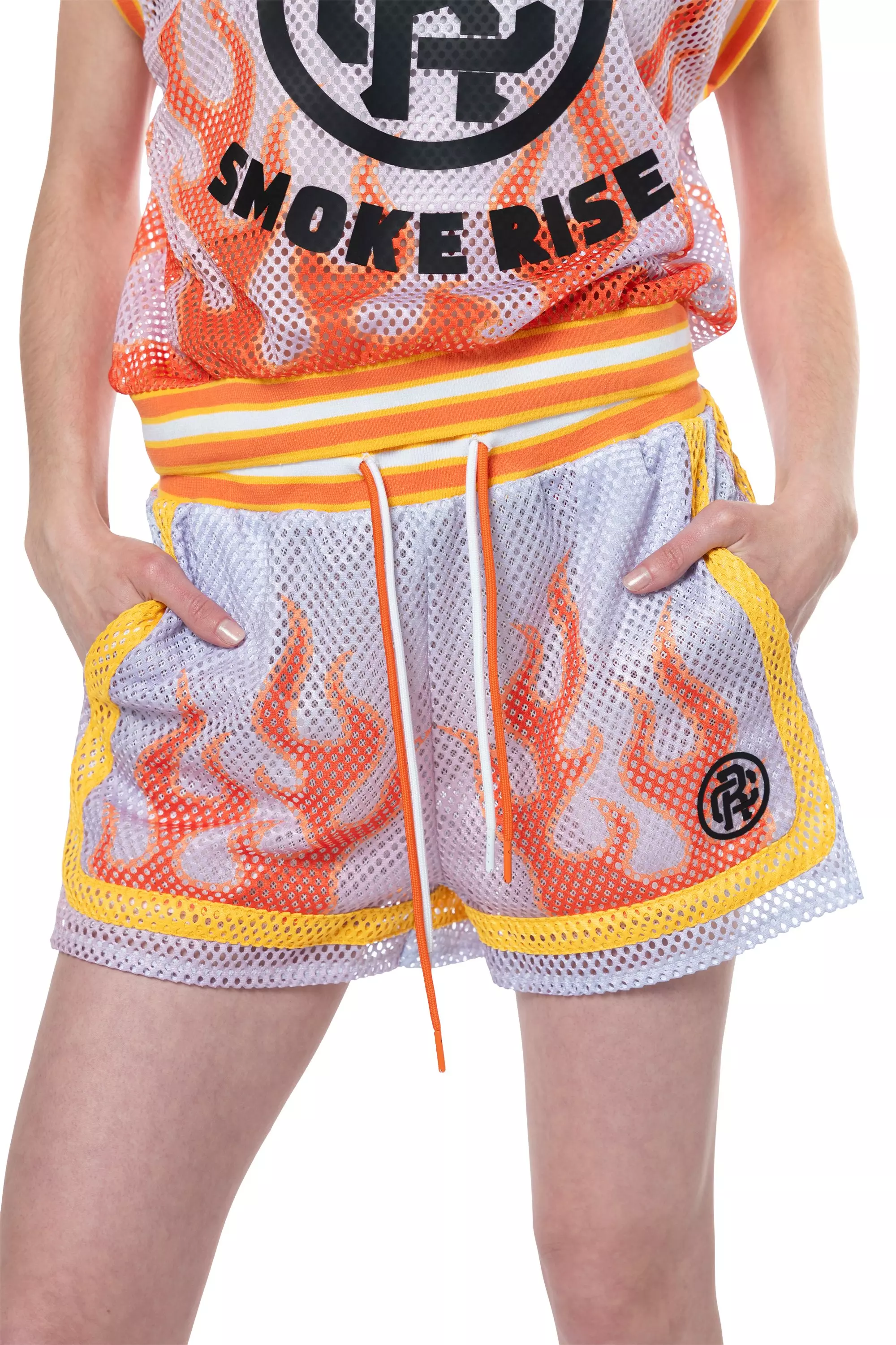 The Smoke Rise Women's Flame Mesh Shorts deliver lasting comfort with a loose, lightweight silhouette. Soft, breathable mesh materials move with every step.