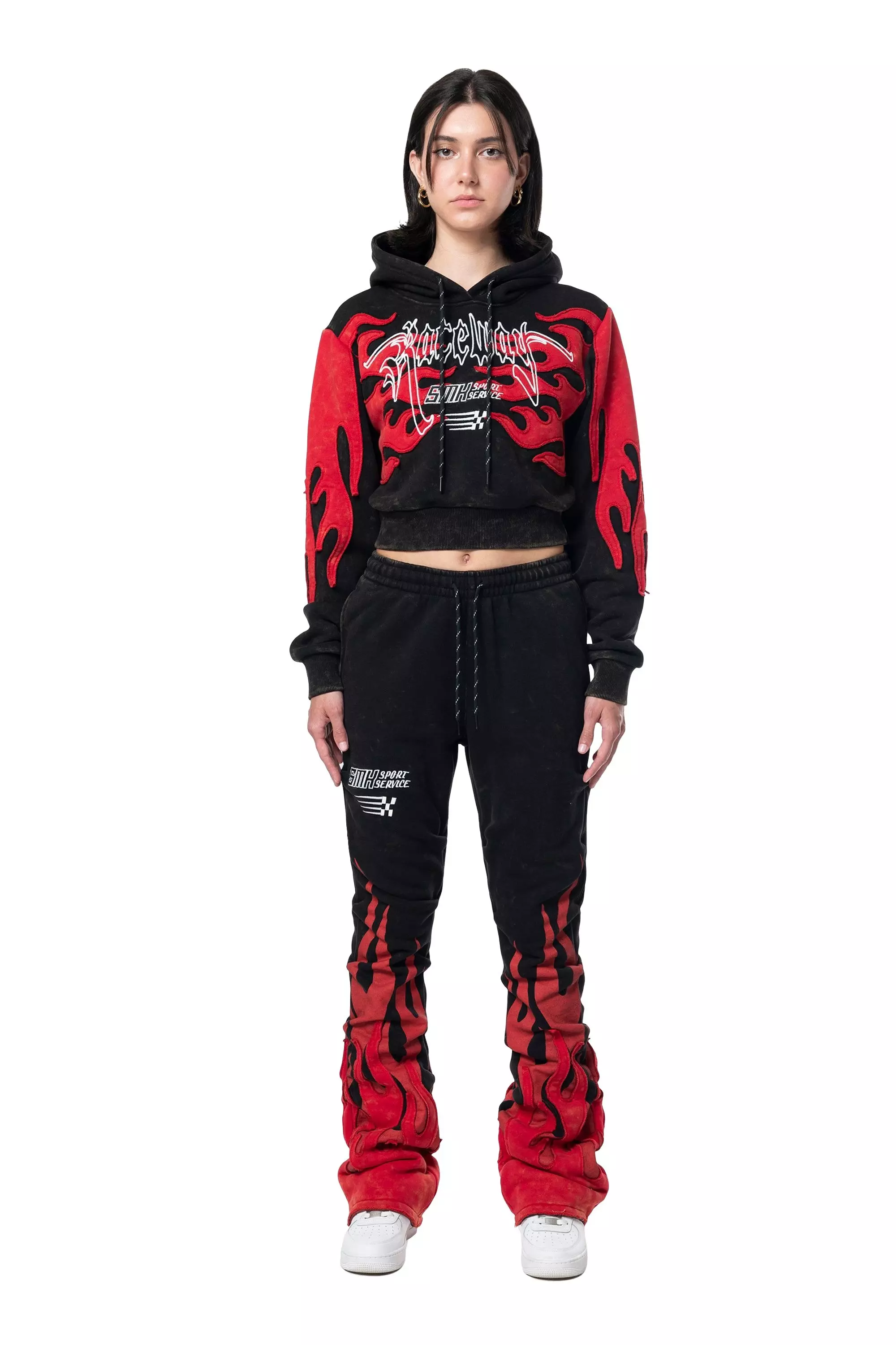 Smoke Rise Women's Racing Flame Stacked Pants - Black