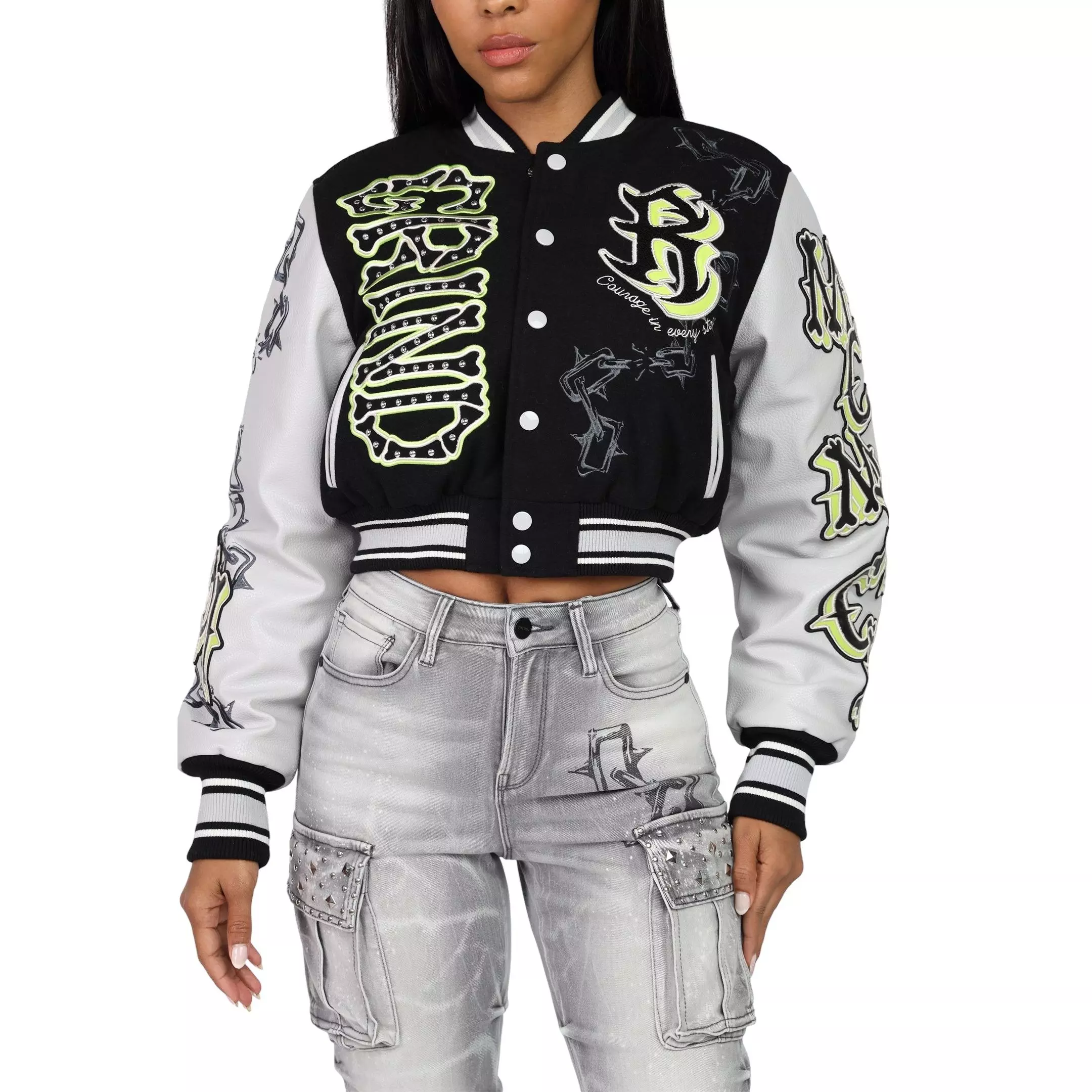 The Smoke Rise Women’s Varsity Jacket - Lime brings a bold, vintage-inspired look with a cozy feel. Designed with a collegiate fit and snap-button closures, it layers easily over tees or hoodies and holds warmth without bulk for everyday comfort.