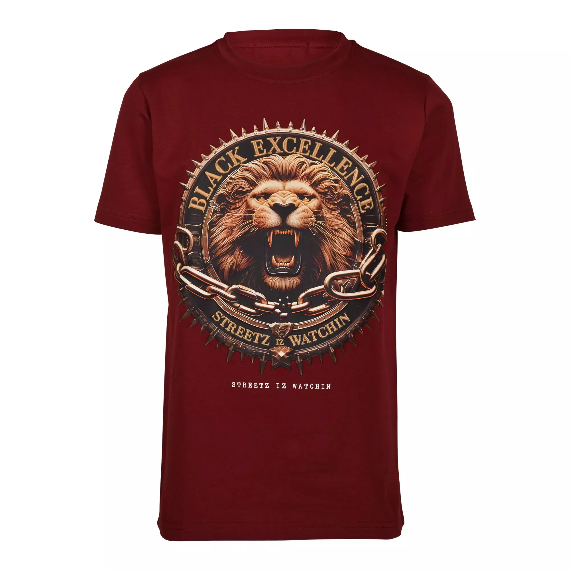 The Streetz Iz Watchin Big Boys' Black Excellence Lion Tee showcases a bold lion graphic on the front. This design captures attention and adds dynamic edge to any style.