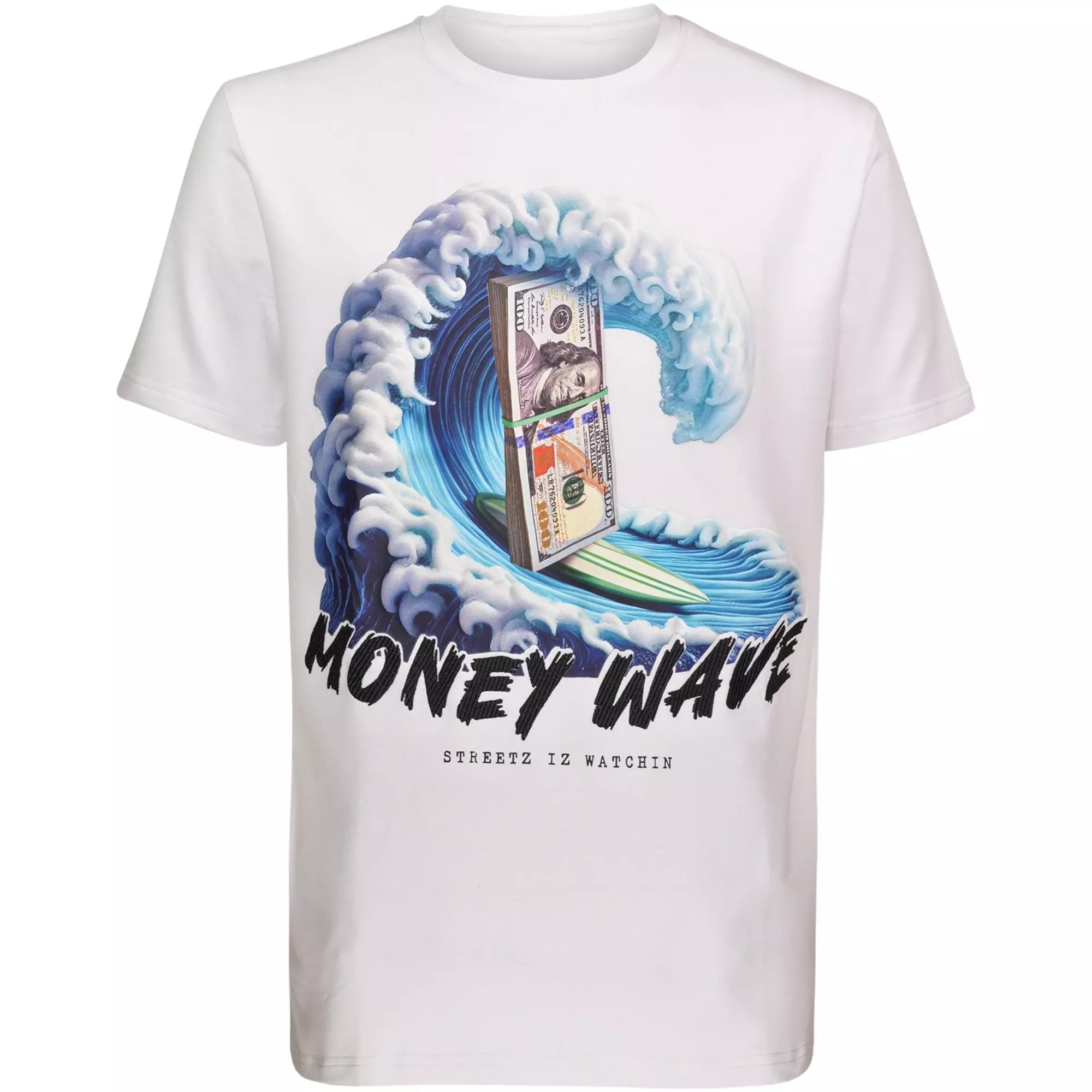 The Streetz Iz Watchin Men's Money Wave Tee - White updates casual staples with a bold yet simple wave graphic on a crisp cotton base. Its soft, breathable fabric delivers everyday comfort, maintaining shape and color through repeated washes for long-lasting wear.