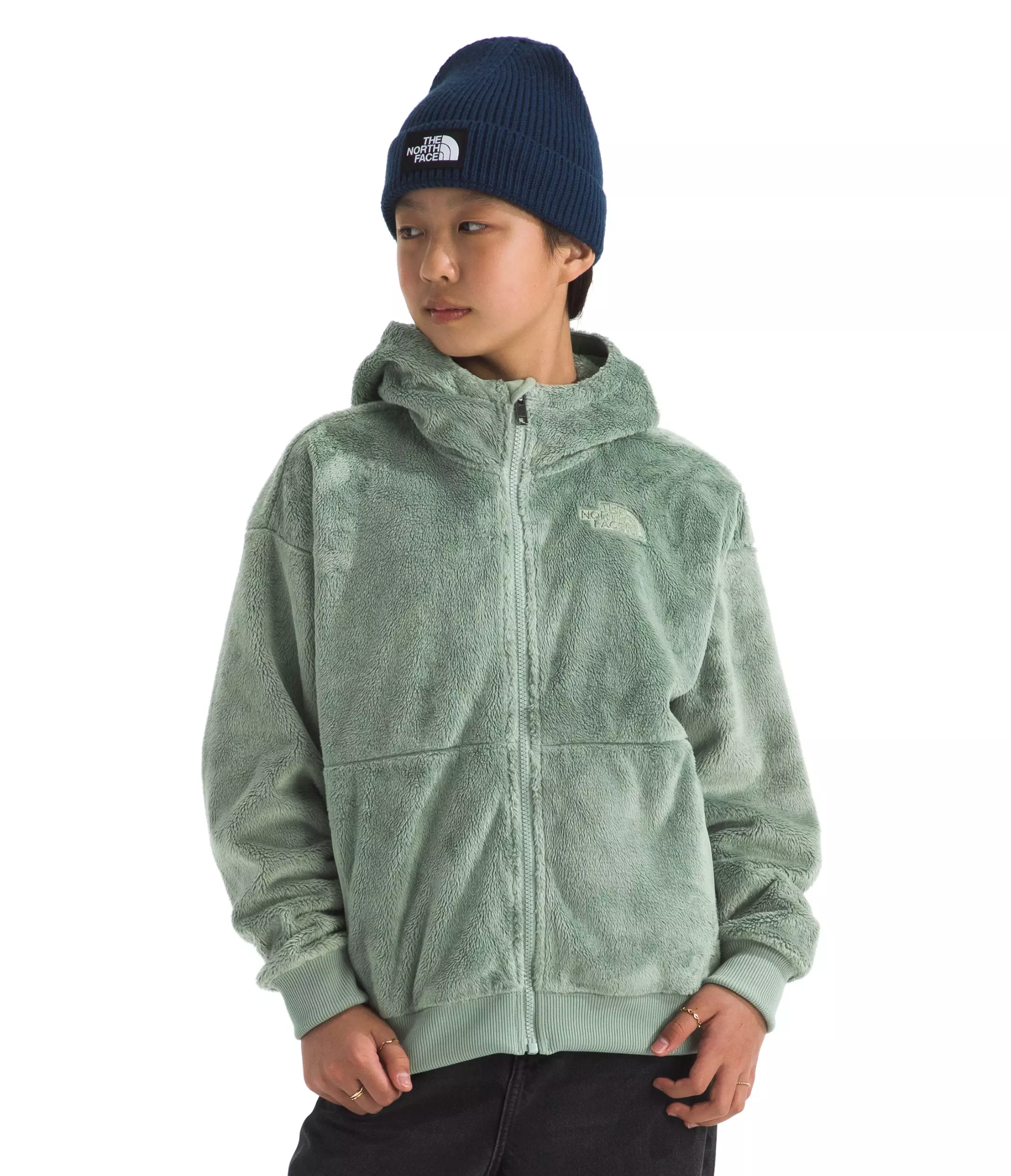 The impossibly soft The North Face Big Girls' Osito Full-Zip Hooded Jacket - Green, made with a 100% recycled fabric, provides instant, heavyweight warmth. A relaxed fit allows room for layering, so they can easily throw it on for recess or to help you gather wood for the campfire. We’ve updated our youth sizing. Please use our sizing guide to find your best fit.Features