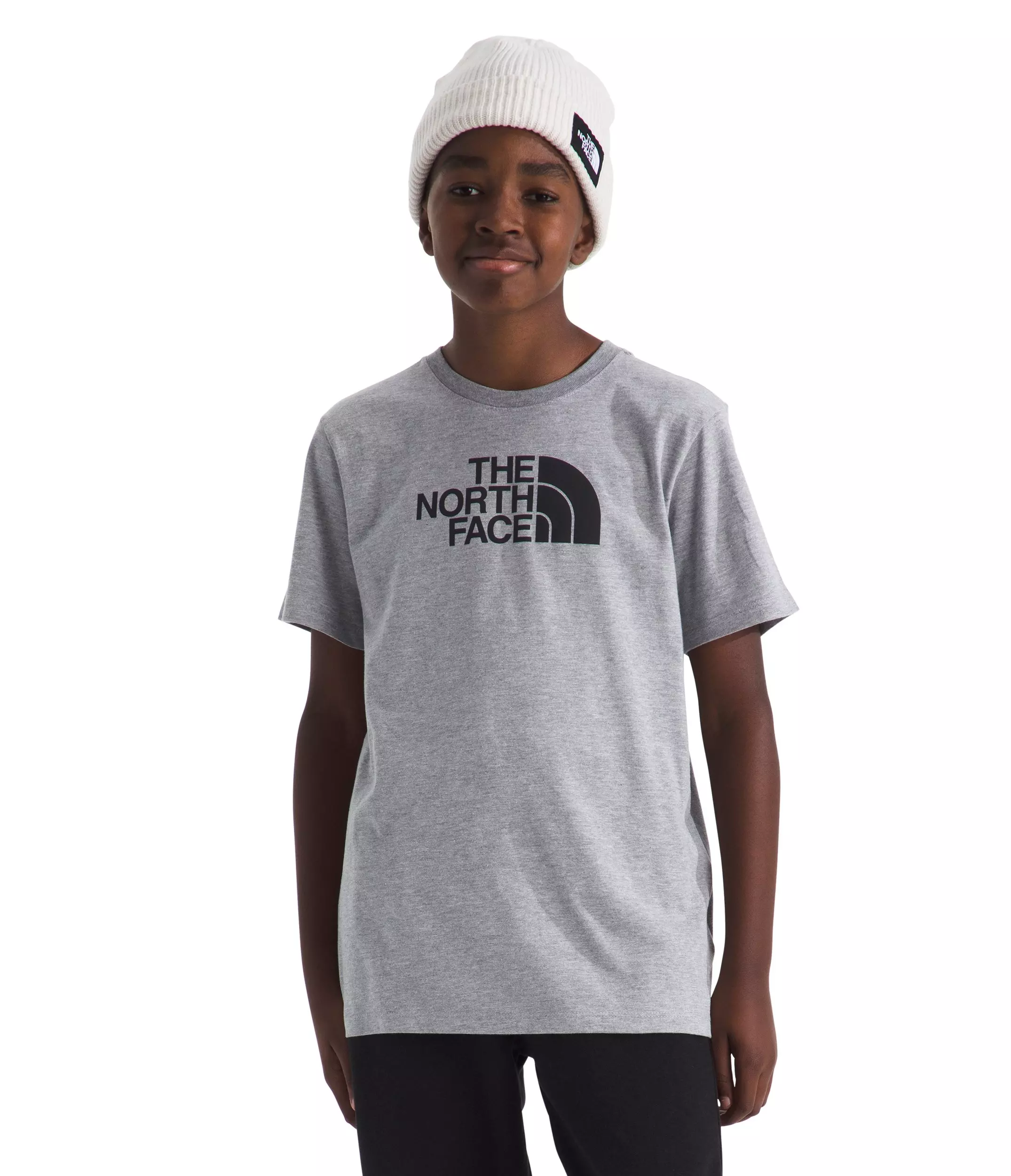 The North Face Big Kids' Evolution Half Dome Short Sleeve Tee - Grey keeps them comfortable from school to weekend adventures. A classic crewneck and set-in sleeves offer easy movement, while the simple Half Dome graphic delivers everyday style.