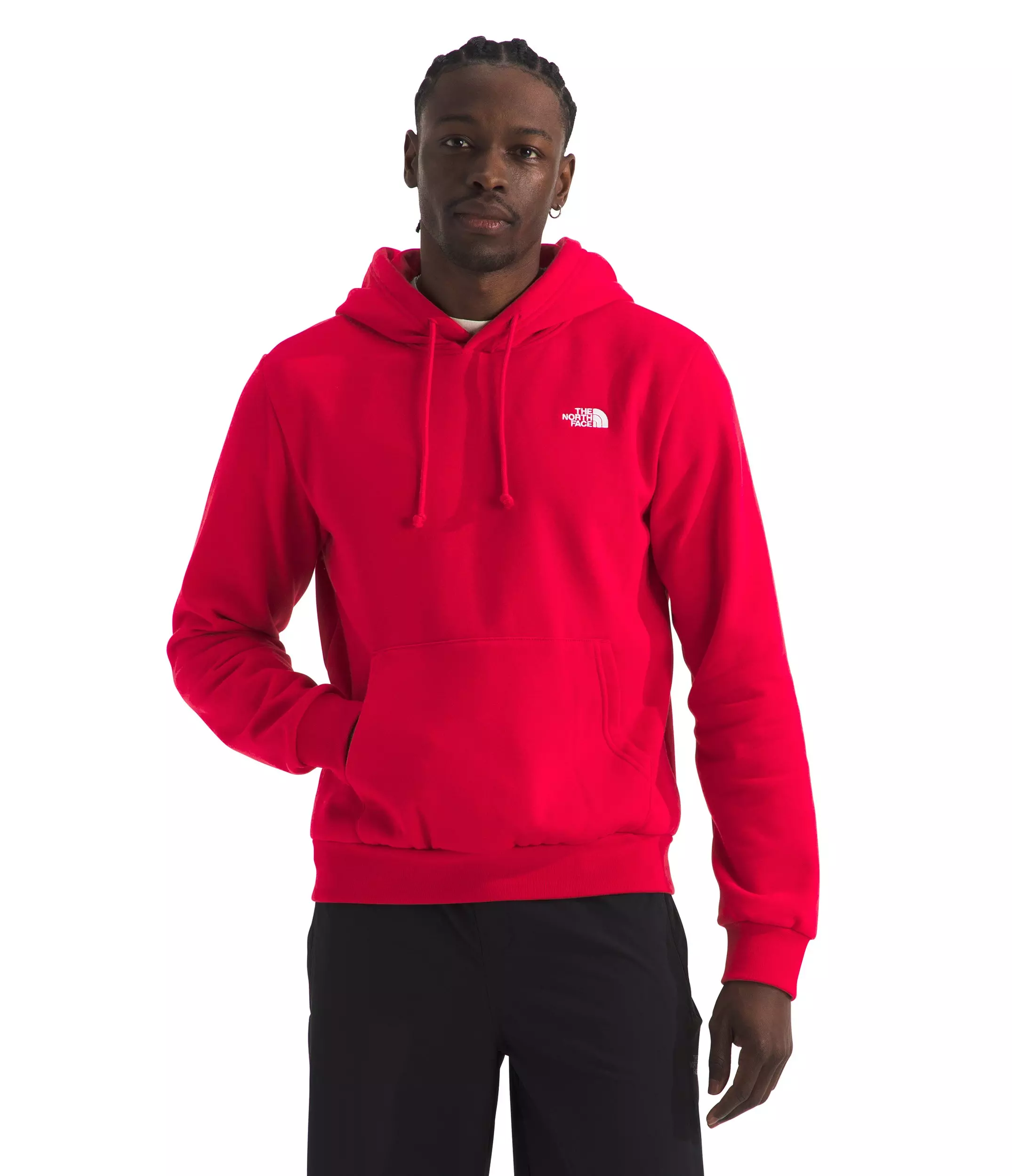 With split kangaroo hand pockets, ribbed cuffs and hem and a comfortable cotton-blend construction, The North Face Men's Evolution Simple Dome Regular Hoodie - Red is a must-have layer for laid-back adventures.Features