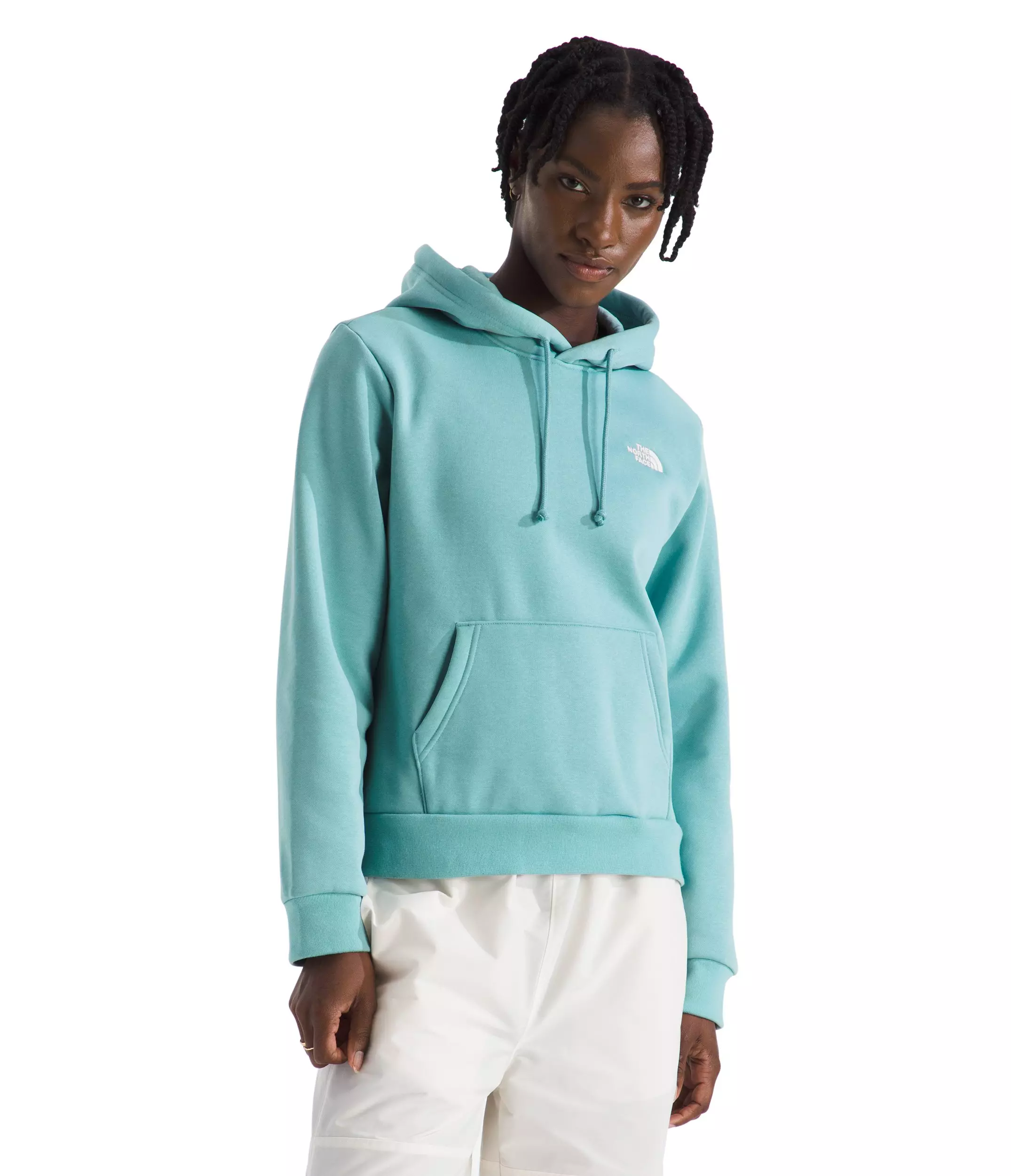 Slip into easygoing comfort with The North Face Women’s Evolution Simple Dome Hoodie -Turquoise, a soft cotton-blend layer for laid-back days and casual adventures. A hooded design, ribbed cuffs and hem, and split kangaroo hand pockets deliver warmth, structure, and convenient storage without bulk.