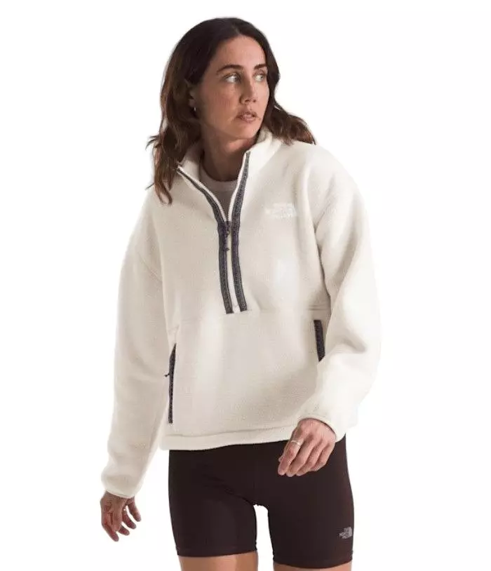 Stay cozy when temps drop in The North Face Women's Fleeski 1/4 Zip Pullover Jacket - Mocha Brown. This relaxed-fit pullover delivers soft warmth with a versatile quarter-zip for easy ventilation and layering, while patterned trim adds subtle standout style for trail days and everyday wear.