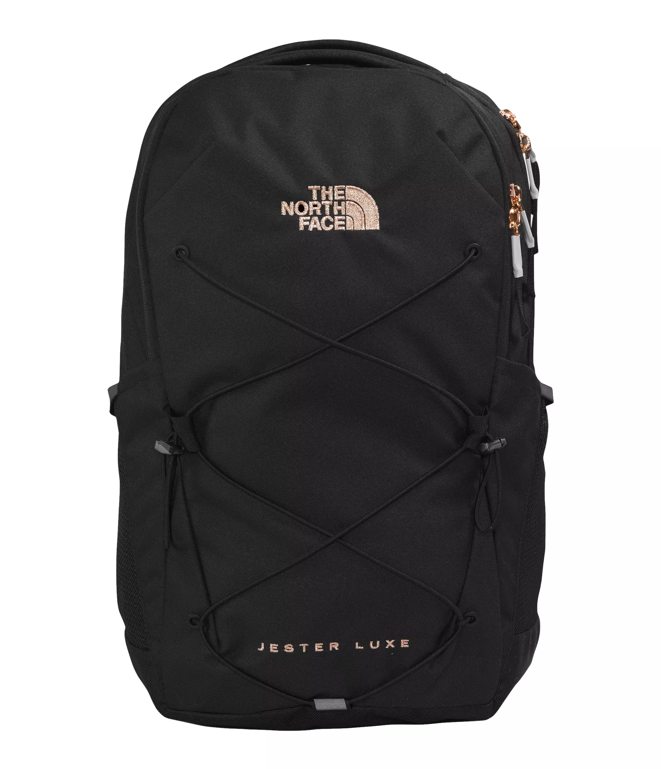 Our classic The North Face Women's Jester Luxe Backpack - Black—now available in a Luxe edition with premium metallic accents—has a padded laptop sleeve, simplified organization, and can stand up completely unsupported. It’s also endorsed by the American Chiropractic Association.Features