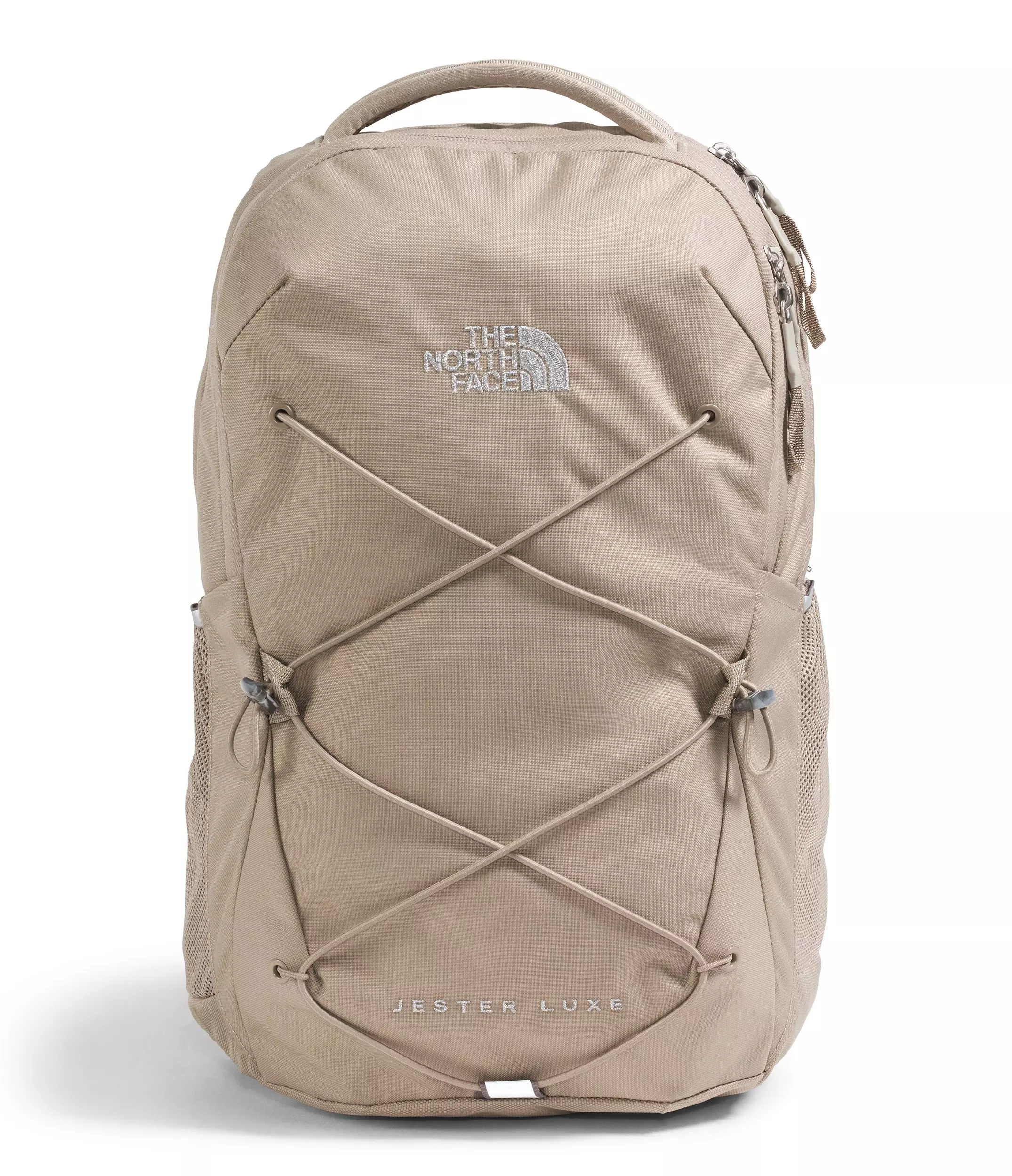 Our classic The North Face Women's Jester Luxe Backpack-Tan/Silver—now available in a Luxe edition with premium metallic accents—has a padded laptop sleeve, simplified organization, and can stand up completely unsupported. It’s also endorsed by the American Chiropractic Association.Features