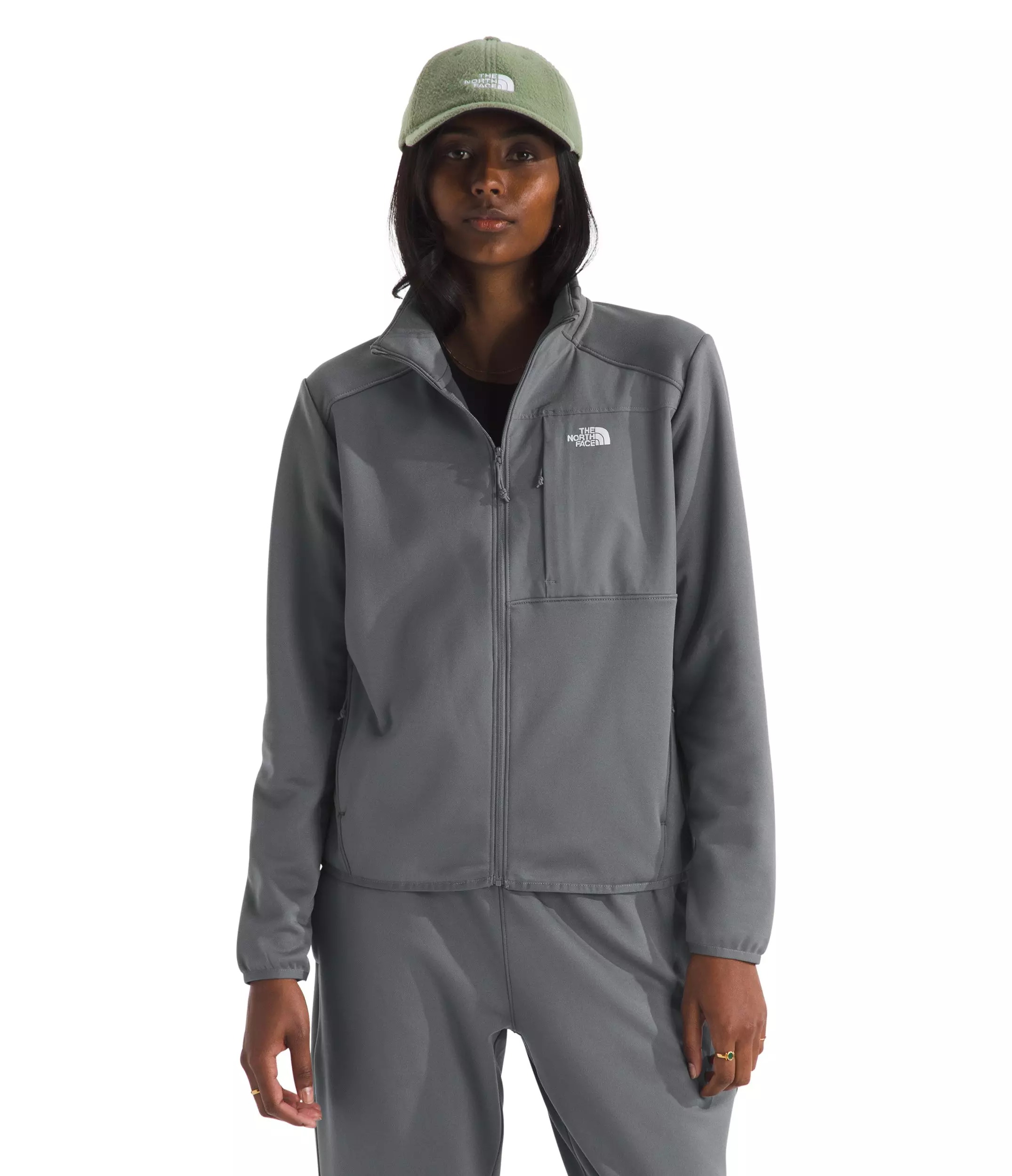 This smoked pearl The North Face Women's Performance Fleece Full-Zip Jacket is a lightweight, cozy tech fleece offering polished outfitting with a hint of elevated athletic appeal. Its modern, sleek design lines and functional details make it a versatile piece great for camping or everyday wear.Features