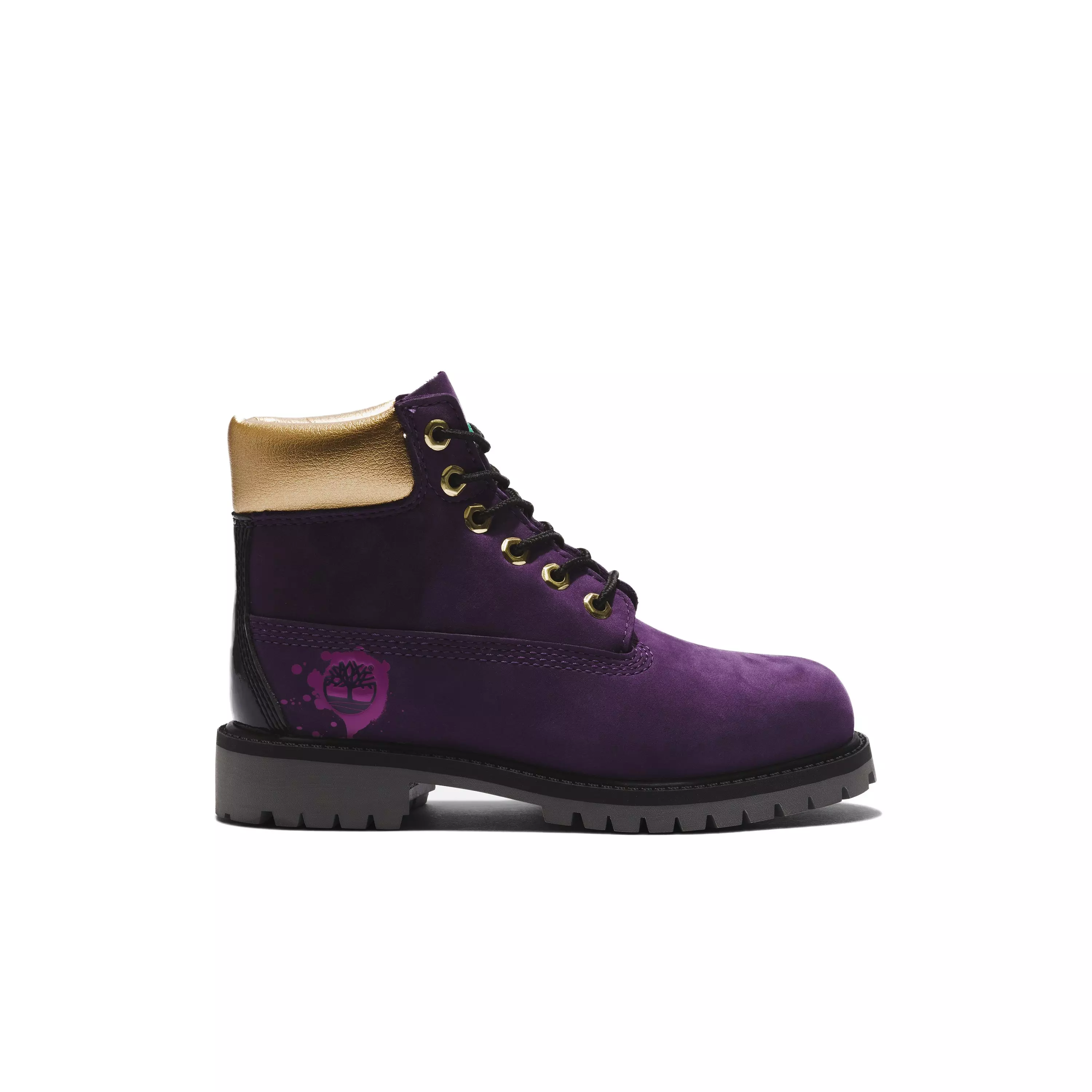 These Timberland 6-Inch Premium "Dark Purple" Toddler Kids' Boots have arch support and 200 grams of PrimaLoft® insulation to help keep growing feet warm and comfy, while seam-sealed waterproof construction helps to keep them dry. A padded collar and foam cushioning add to the comfort. Plus, these boots are made with Better Leather from a tannery rated silver for water, energy, and waste management practices.Features