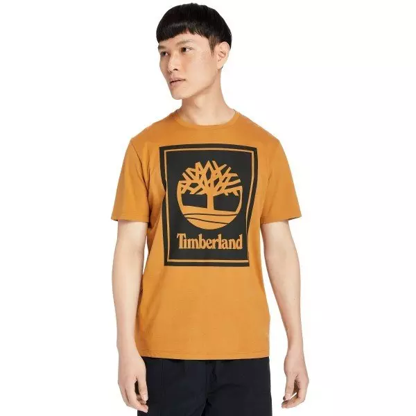 Breeze through your days in the Timberland Men's Stack Logo "Wheat" Tee, an easy-to-clean humble piece of casual clothing that is understated enough for straightforward outfit coordination but cool enough to make a fashion statement. Lightweight blends of fabric and smooth neckline give a comfortable non-restrictive fit. Bold coloring and universal appeal provide a basic way for letting the world know who you are.