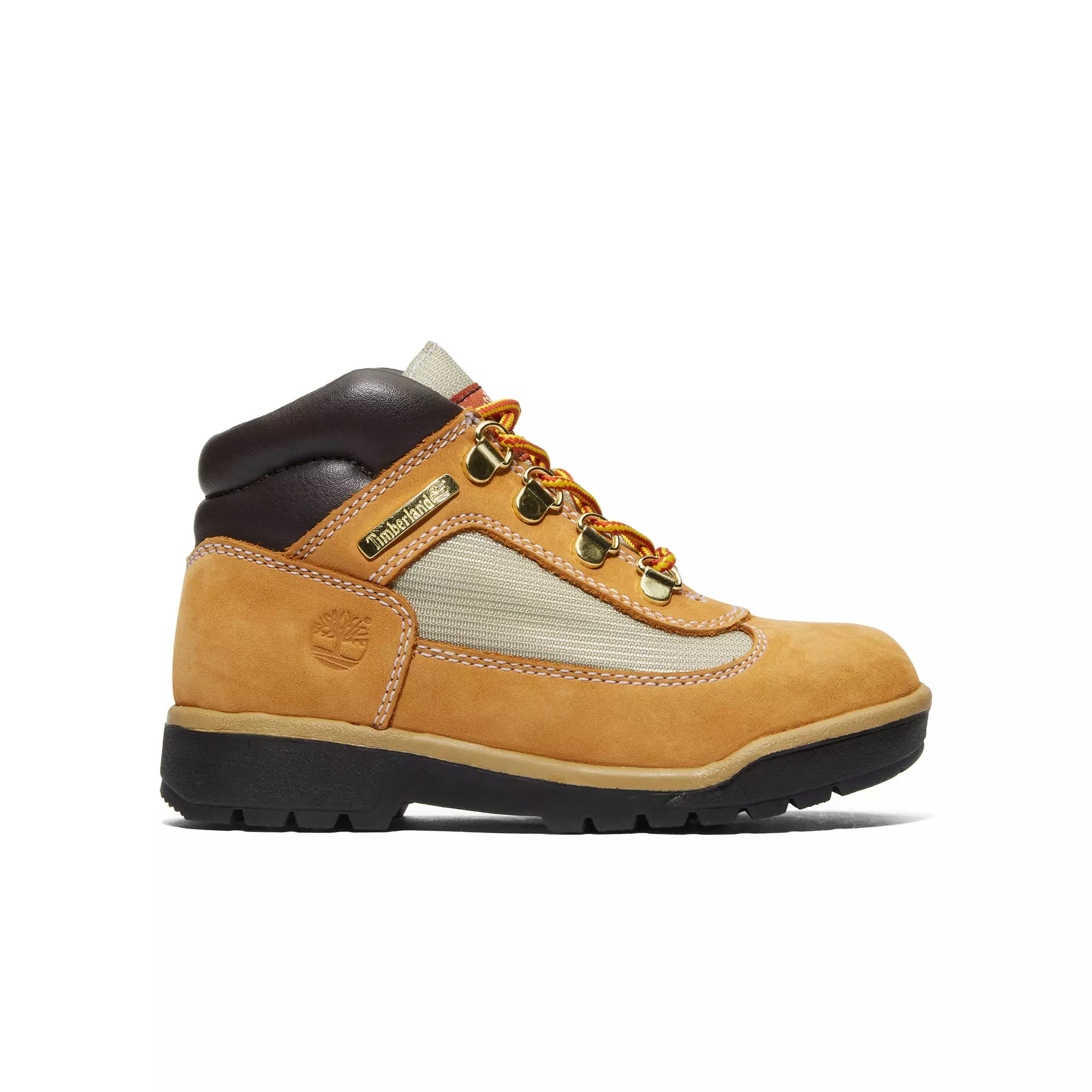 The Timberland Premium Field "Wheat" Grade School Boys' Boot stands up to active adventures. Its tough construction, solid traction and reinforced stitching handle heavy use.