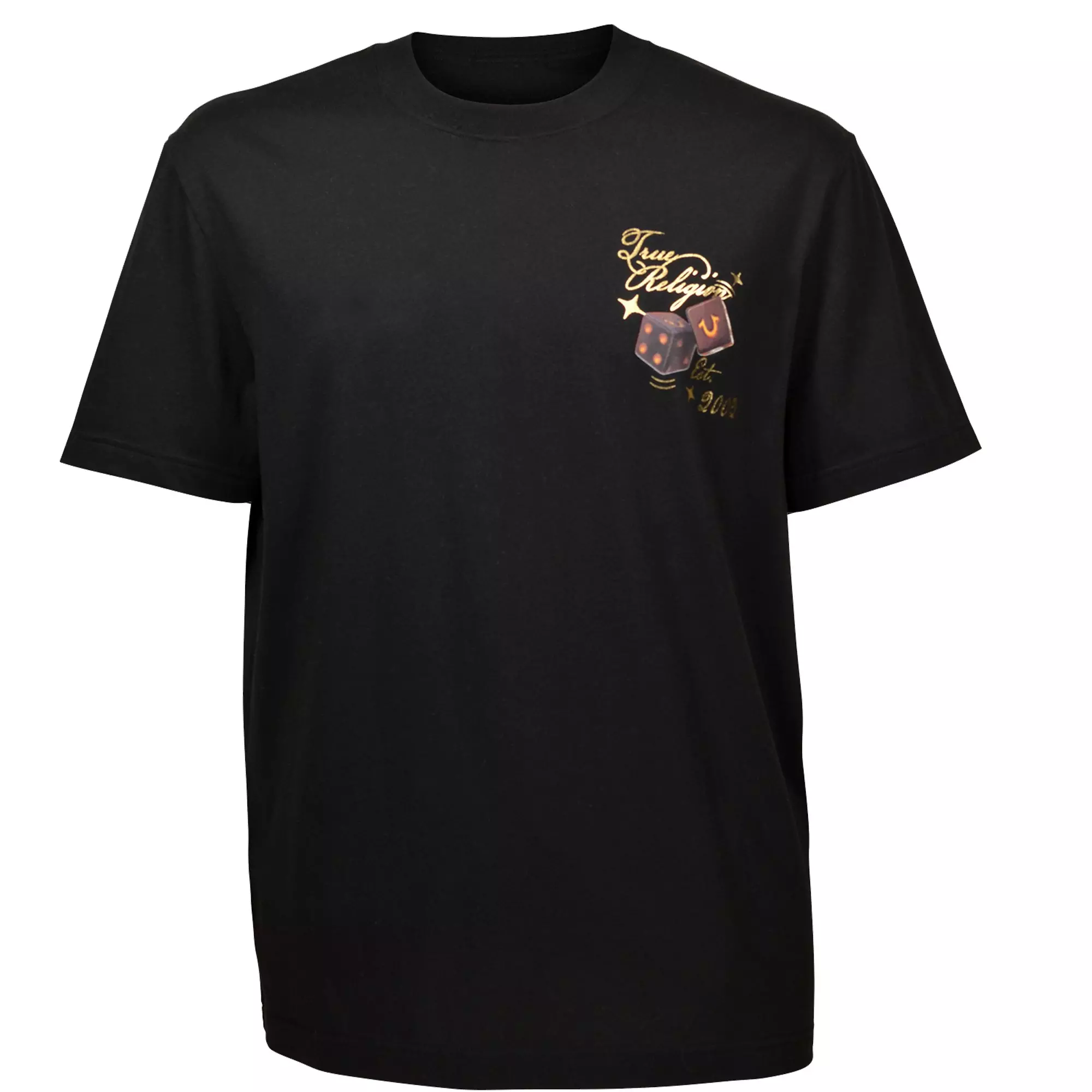The True Religion Men's Dice Tee - Black delivers easy, everyday comfort with a soft 100% cotton build and a classic crewneck. Breathable and lightweight, it feels great on its own or layered under your favorite jacket.