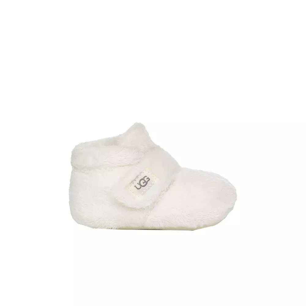The UGG Bixbee Box Set "Off-White" Infant Bootie wraps little feet in super-soft terry cloth. Silicone tread grips surfaces and helps first steps with added stability. A lightweight profile and secure fit keep these booties in place during early exploration.Cozy and machine washable, the bootie retains its plush feel after every wash. Parents appreciate easy cleaning and an adorable silhouette in a neutral shade that matches any outfit.