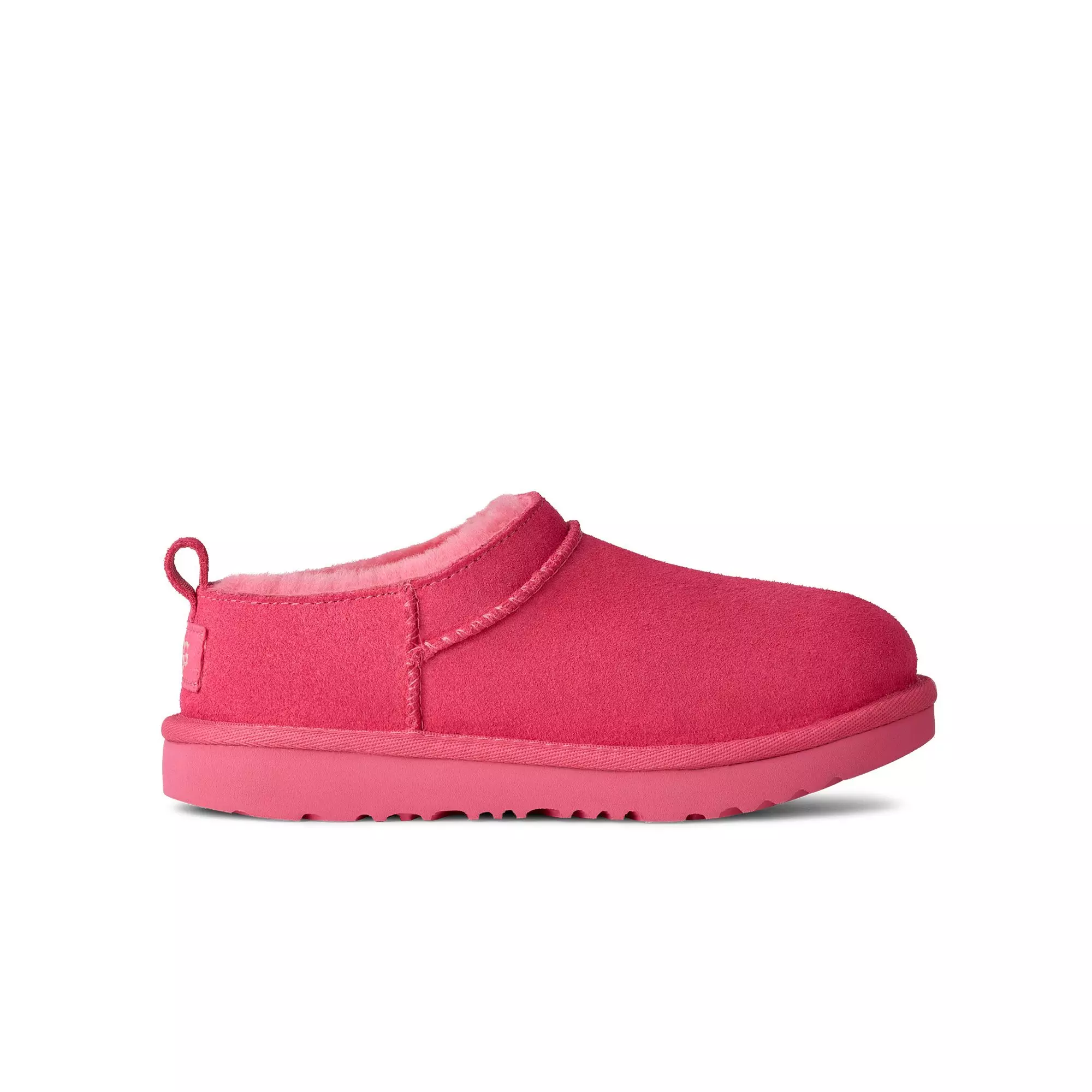 The UGG Classic Micro "Pink Bloom" Grade School Girls' Boot refreshes a favorite silhouette with a low-profile, easy slip-on design. A genuine suede upper and soft UGGplush lining keep feet cozy, while the lightweight sugarcane EVA outsole delivers cushioned support for everyday adventures.