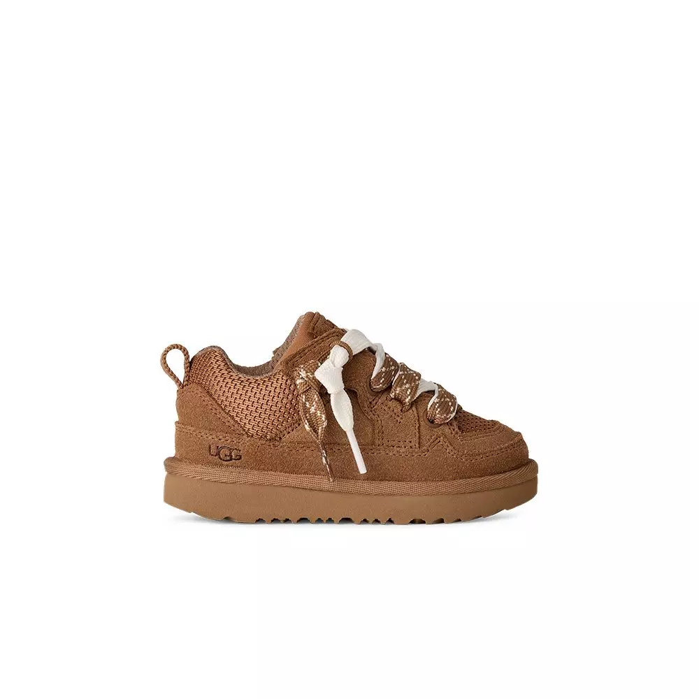 UGG Lo Lowmel "Chestnut" Toddler Girls' Boot blends sneaker-like ease with slipper-level comfort in a low-profile design made for everyday adventures. A textured upper mixes genuine suede with recycled ballistic canvas mesh for laid-back, durable style.