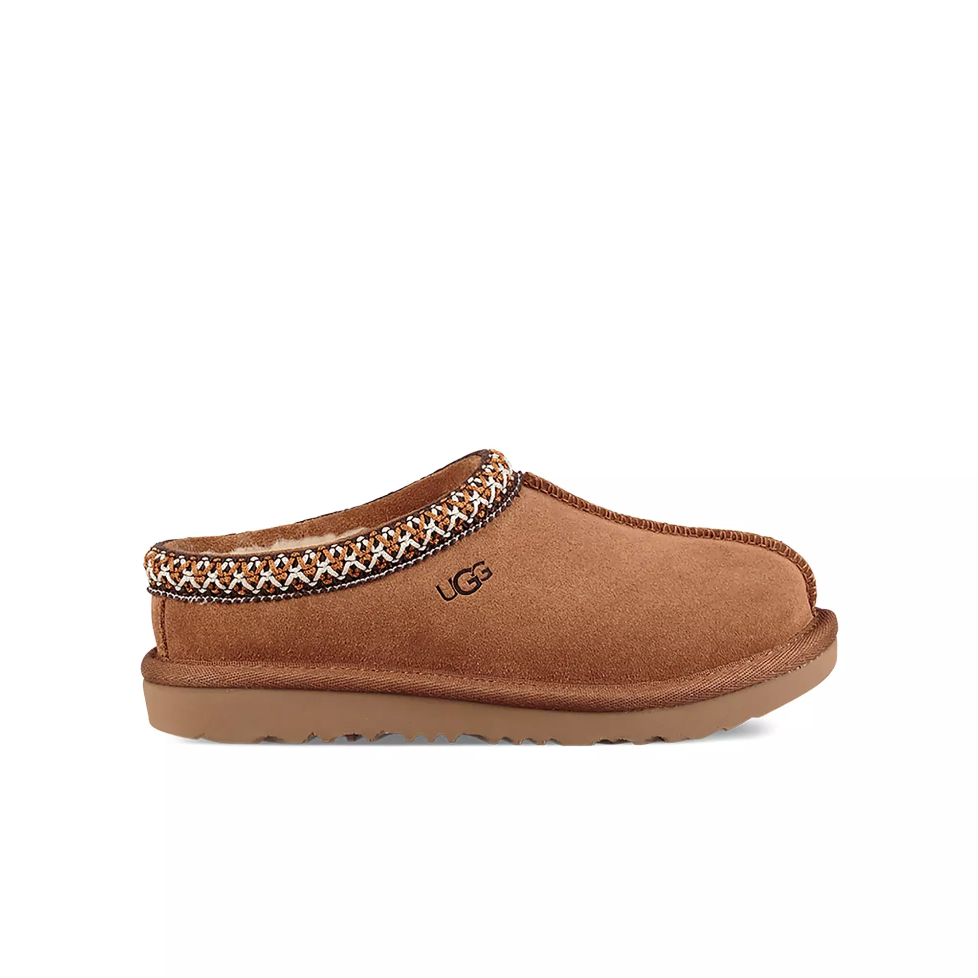 Give them easy comfort with the UGG Tasman II "Chestnut" Grade School Kids' Slipper. This versatile slip-on works as a slipper or a shoe, perfect for school, play dates, camping trips, and relaxed days around the house.