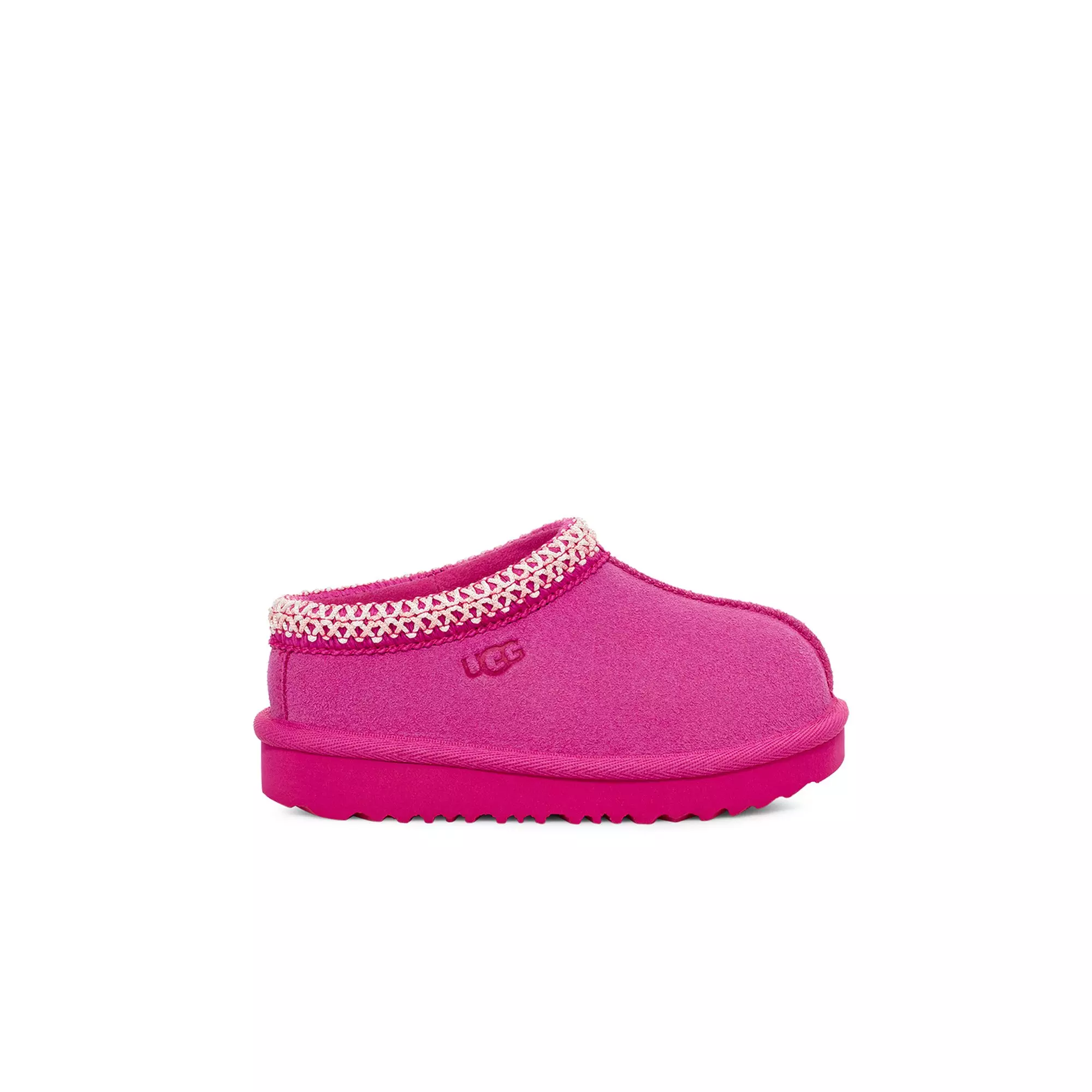 The UGG Tasman II "Pink" Toddler Girls' Slipper can work as a slipper or a shoe – or both. Slip-on for school, play dates, camping, or just around the house. This product was made in a factory that supports women in our supply chain with the help of HERproject, a collaborative initiative that creates partnerships with brands like ours to empower and educate women in the workplace. The outsole of this product is either a SugarSole™ outsole, which is a responsible compound using sugarcane foam that allows us to reduce dependency on fossil fuels by replacing petroleum-based ethylene, or a Treadlite by UGG™ outsole.Features