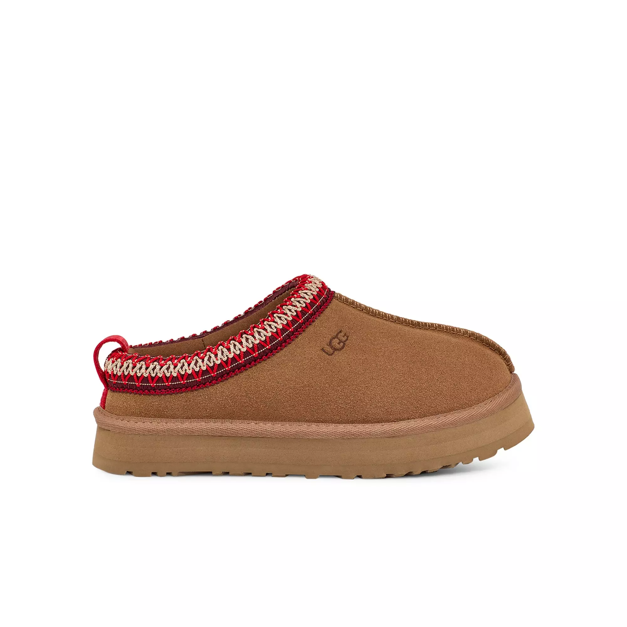 A maximalist take on the timeless Tasman, the UGG Tazz "Chestnut" Grade School Girls' Slipper elevates everyday comfort with a 1.5" platform that boosts cushioning and style. Made from rich suede and lined with signature UGGplush™ wool blend, it delivers cozy warmth and a slipper-like feel indoors or out.