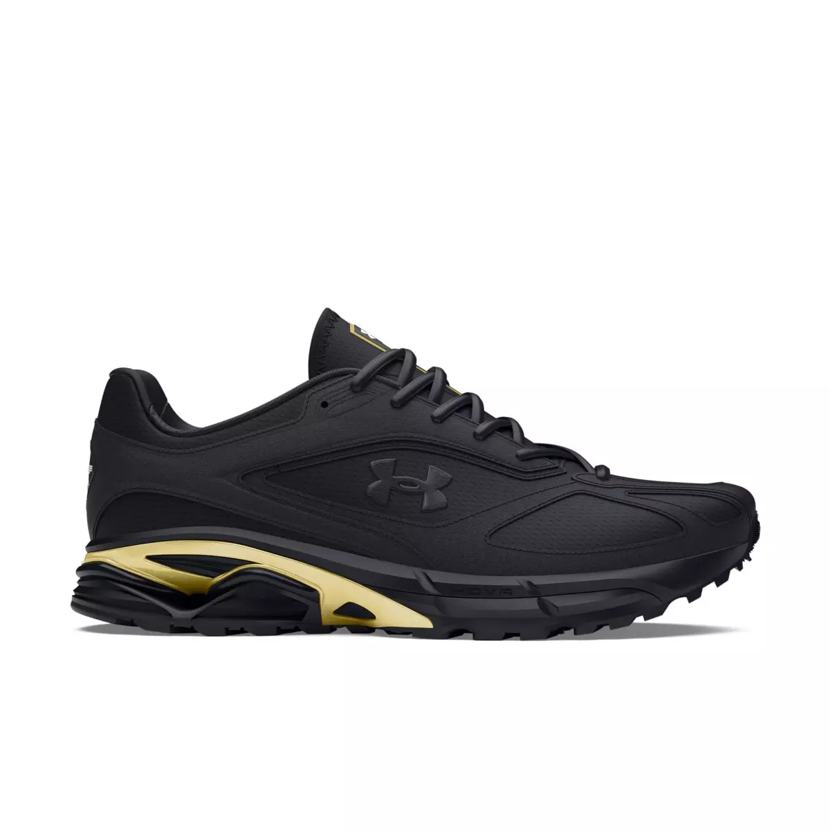 Originally launched in 2009, we brought back one of UA's first Under Armour Apparition "Black/Metallic Gold" Unisex Running Shoe. These throwbacks are packed with authentic running shoe details but updated with fresh new colors and soft UA HOVR™ cushioning for all-day comfort.