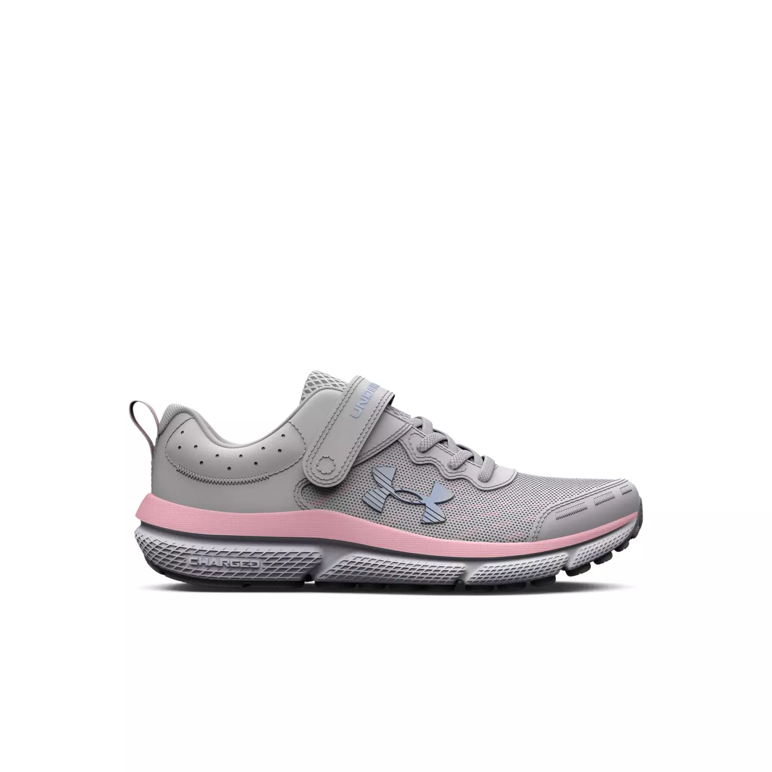 Keep little feet comfy and confident with the Under Armour Assert 10 AC Wide "Halo Grey/Pink Sugar" Preschool Girls' Running Shoe. A breathable mesh upper helps feet stay cool, while a wide fit provides extra room for growing toes. The adjustable hook-and-loop strap and elastic laces make on-and-off easy for busy mornings.