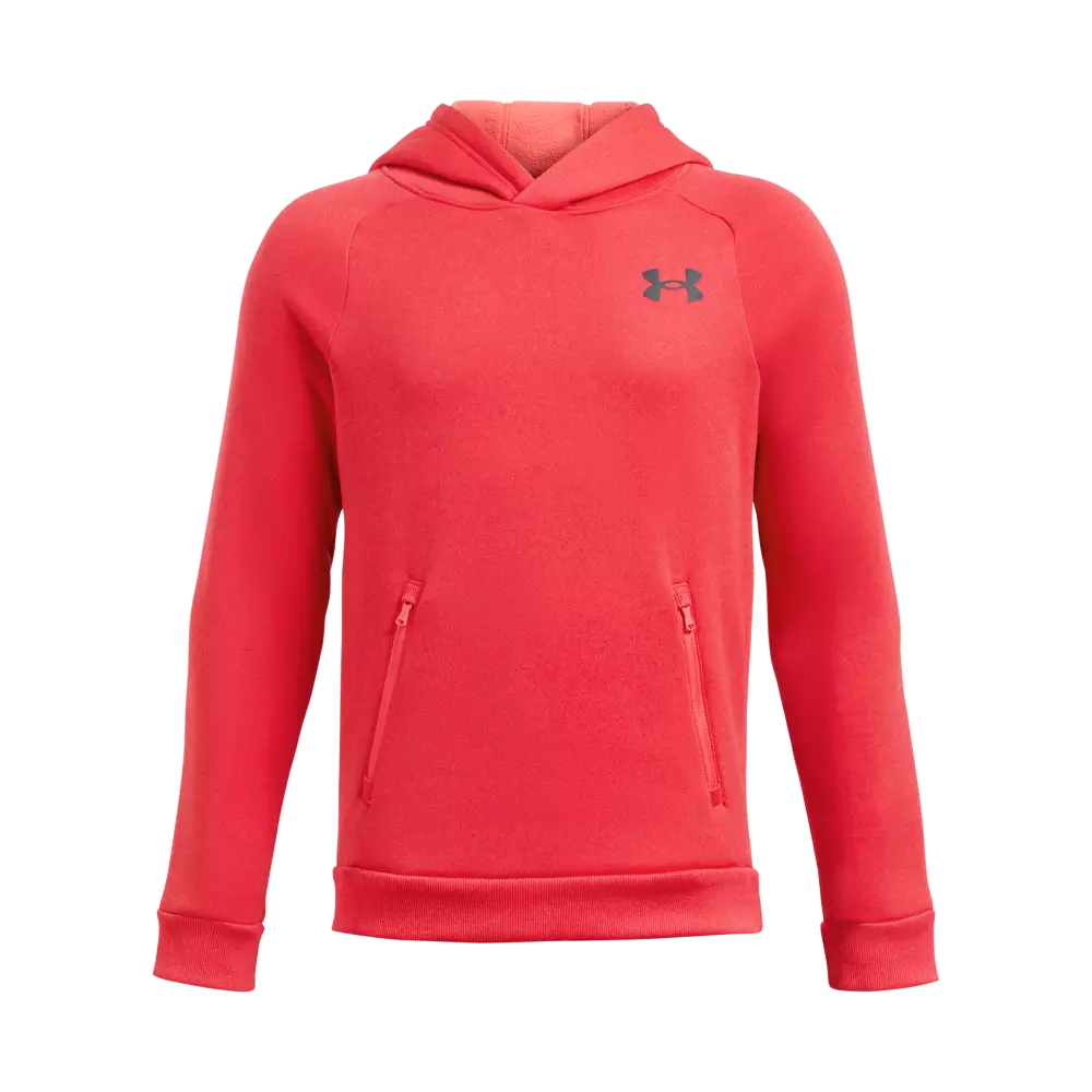 The Under Armour Big Boys' Armour Fleece Pullover Hoodie delivers lightweight warmth with flexible comfort for school days, practice, and everything between. Armour Fleece fabric feels smooth outside with a soft, brushed interior that helps trap heat without weighing him down, so he stays comfortable when the temperature drops.