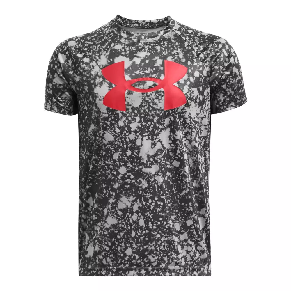 Under Armour Big Boys' Tech Big Logo Printed Short Sleeve Shirt - Grey/Red