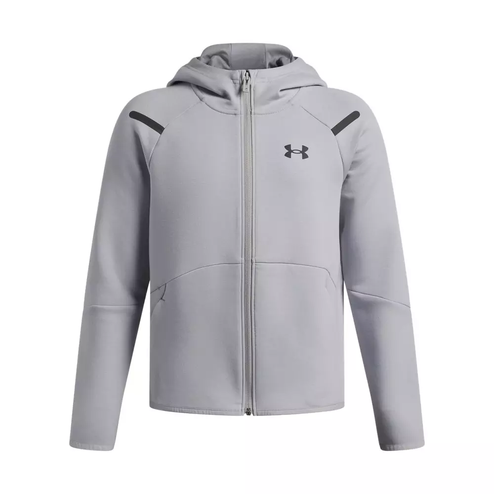Always on point—the Under Armour Big Boys' Unstoppable Fleece Full-Zip Jacket - Grey made with our most premium fleece fabric that’s smooth on both sides, stretches when you need it, and breathes easily. So, when you step out on the street, you can do it confidently.Features