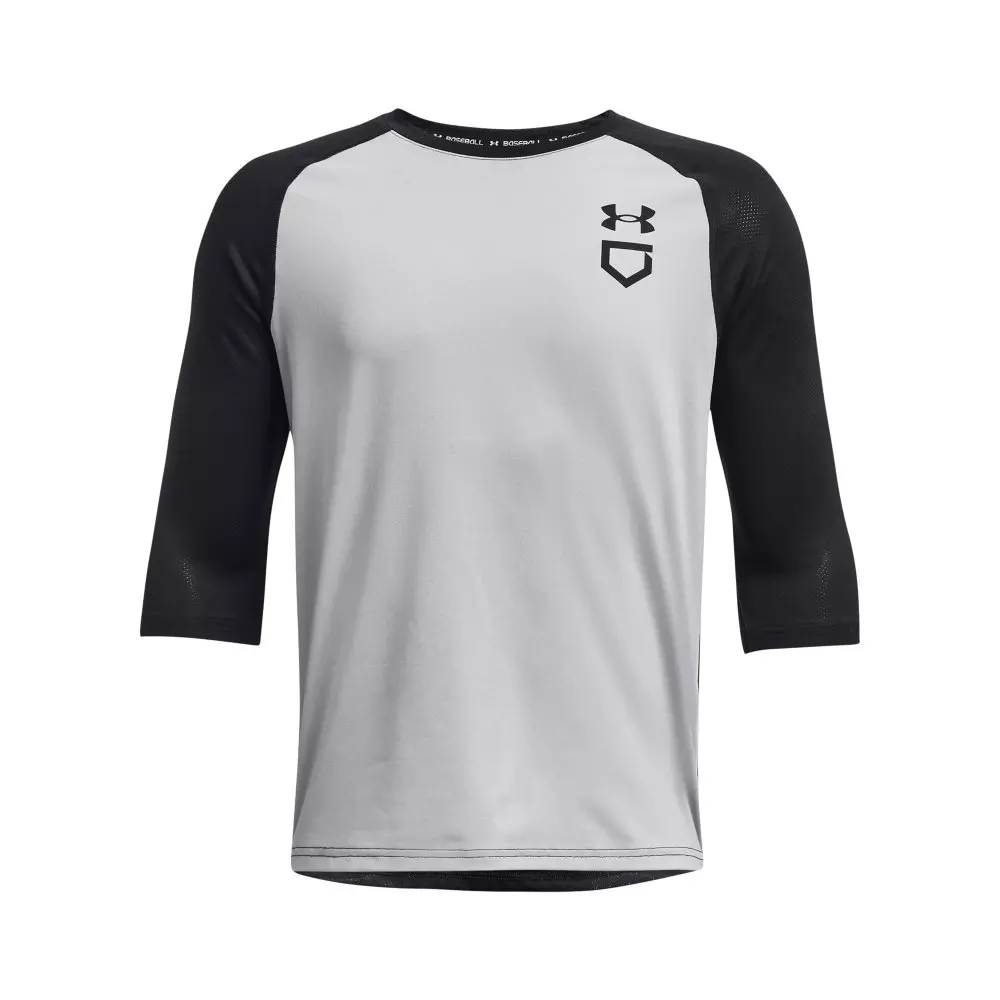 Made for young athletes on the move, the Under Armour Big Boys' Utility 2/3 Shirt - Grey/Black delivers lightweight comfort that helps them stay cool and dry. The smooth, breathable fabric wicks sweat fast so practice and game days feel easier from warm-up to the final play.