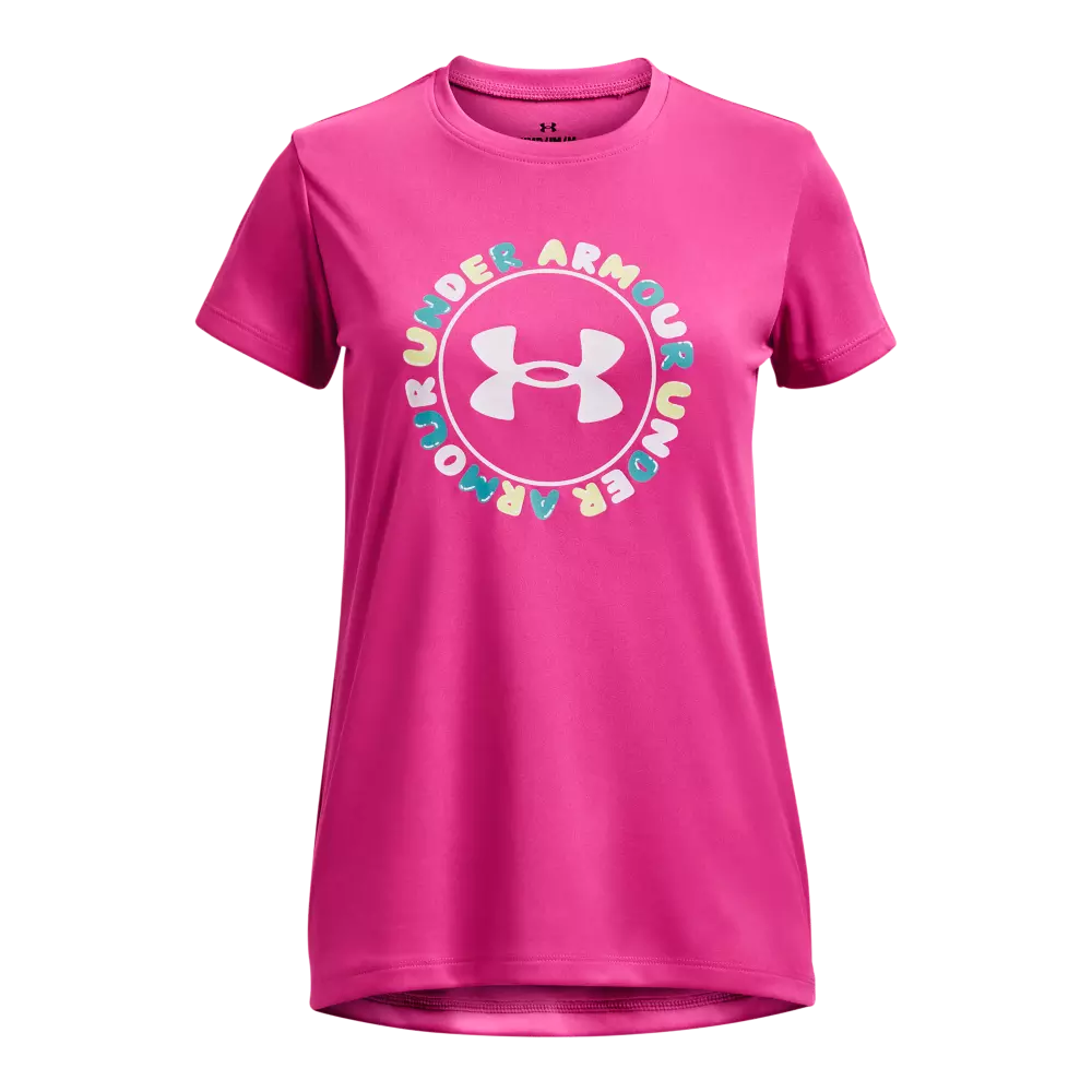 Under Armour Big Girls' Tech Twist Wordmark Tee-Pink