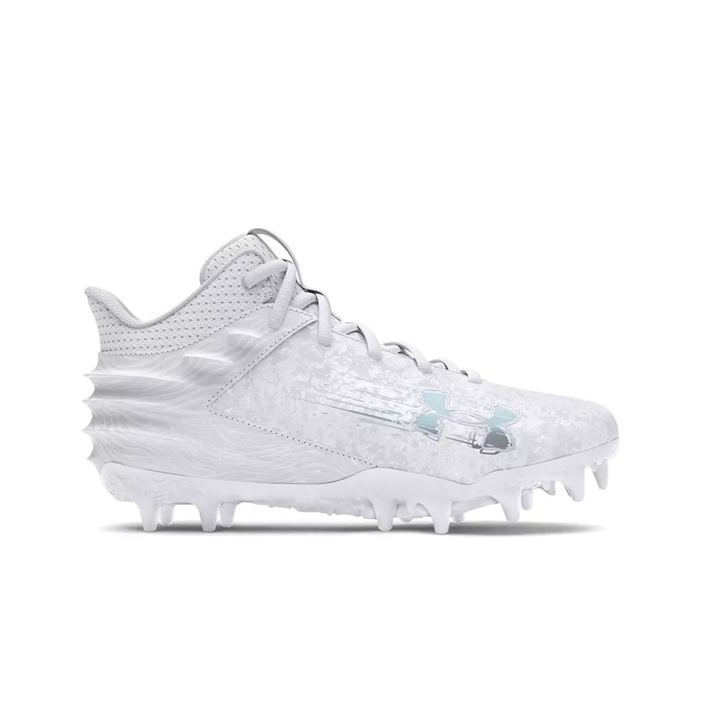 Under Armour Blur Smoke Jr Mid "White/Silver" Grade School Boys' Football Cleat