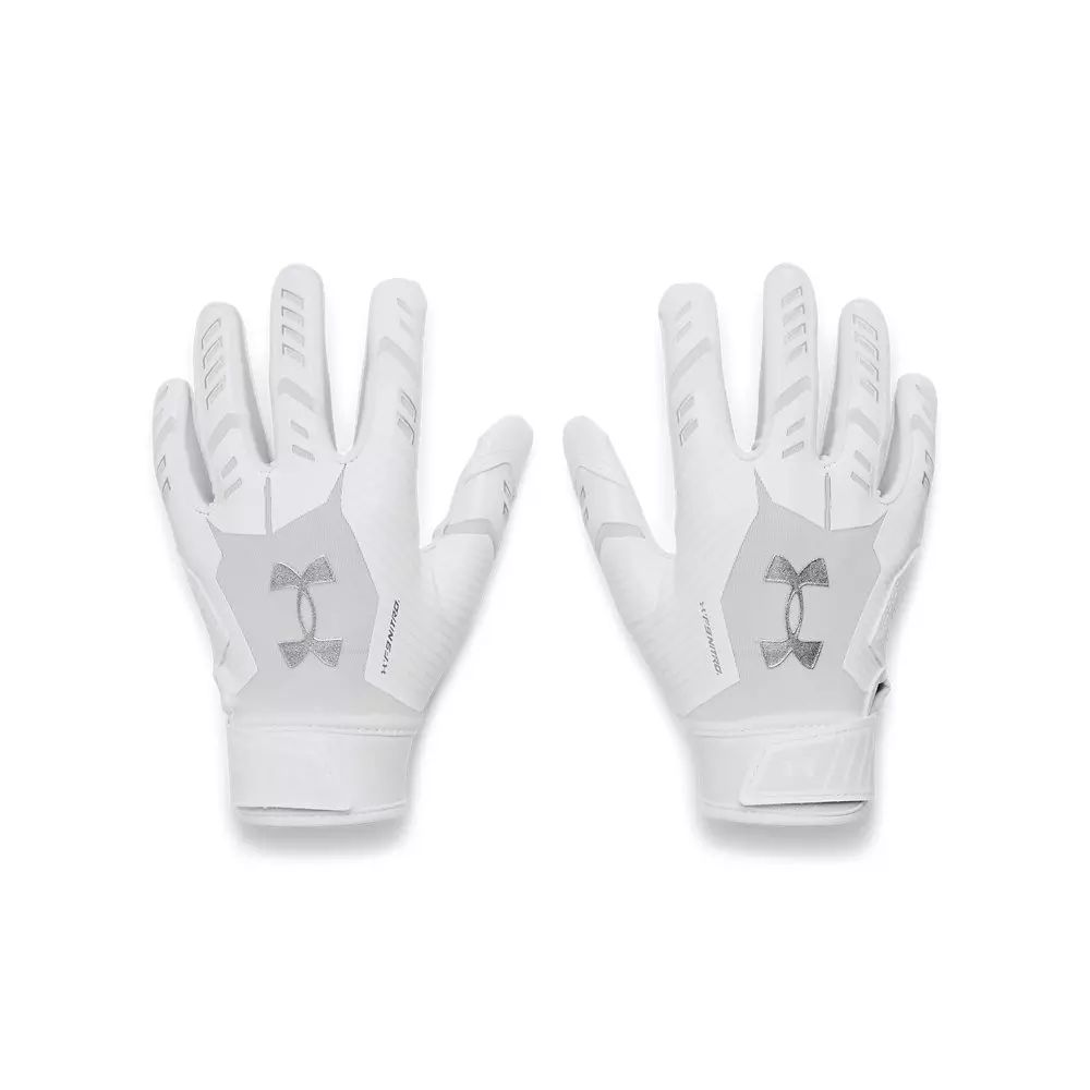 Under Armour F9 Pee Wee Receiver Football Gloves - White/Silver