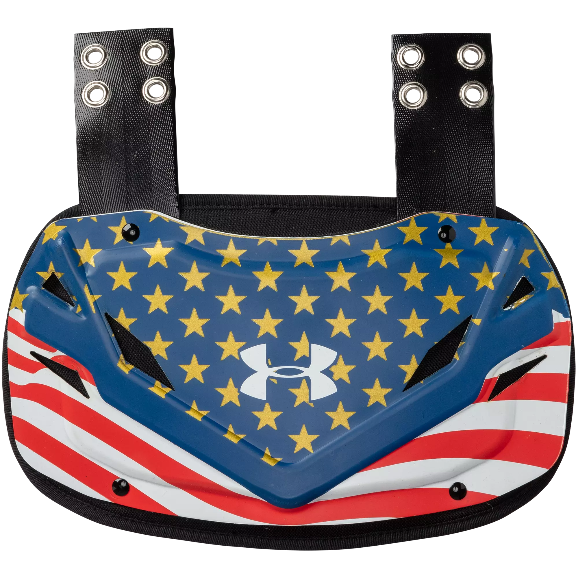 The Under Armour Gameday American Flag Football Backplate provides protection to the lower back, kidneys and spine. The contoured design and foam interior provides a superior fit and comfort. Universal fit connects to most shoulder pads.Features