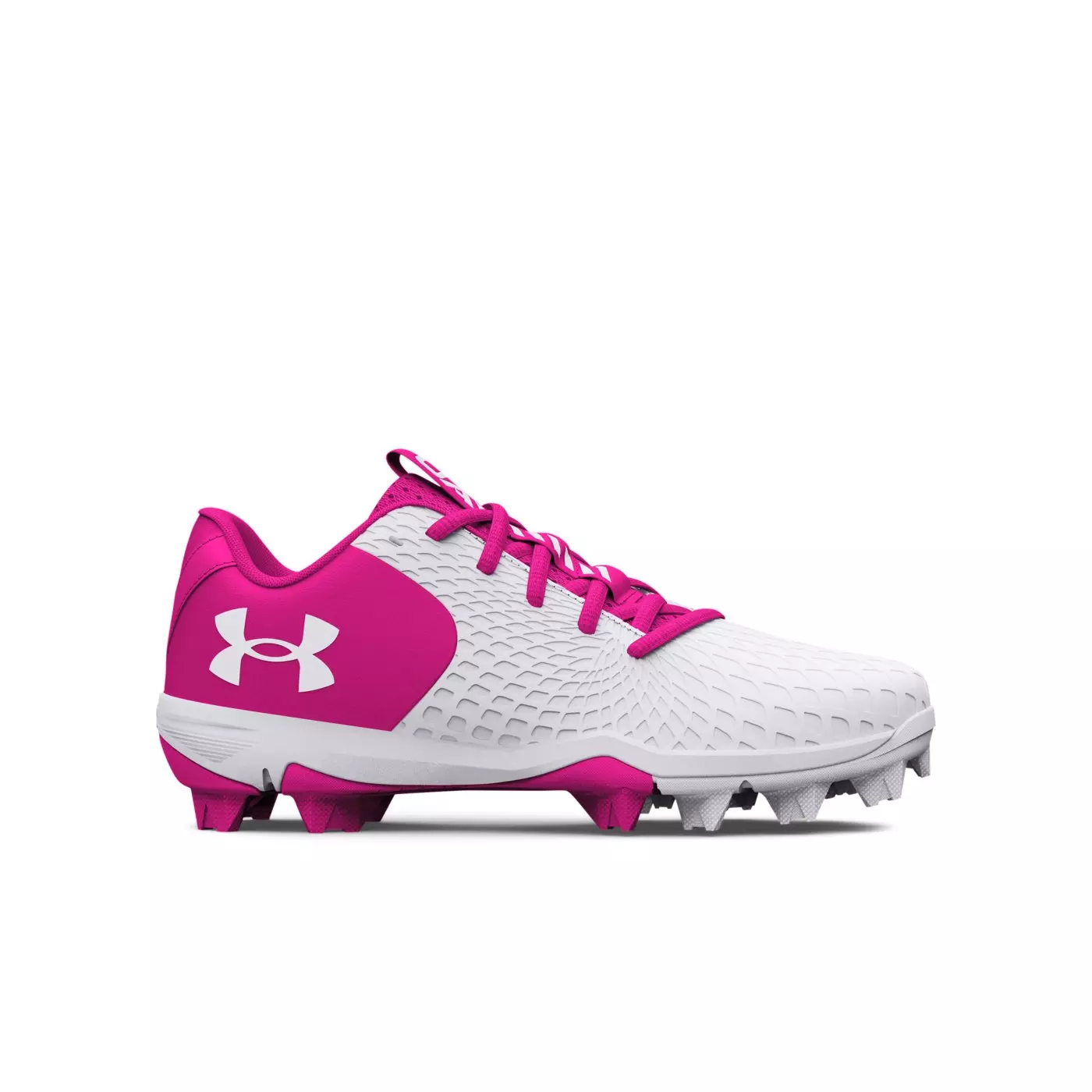 Under Armour Glyde 2 RM Jr. "White/Topic Pink" Grade School Girls' Softball CleatWomen's feet are a different shape than men's. That's a fact. These Under Armour Glyde 2 RM Jr. "White/Topic Pink" Grade School Girls' Softball Cleat were built for women by women, giving you the best fit, traction, breathability, and serious score power.